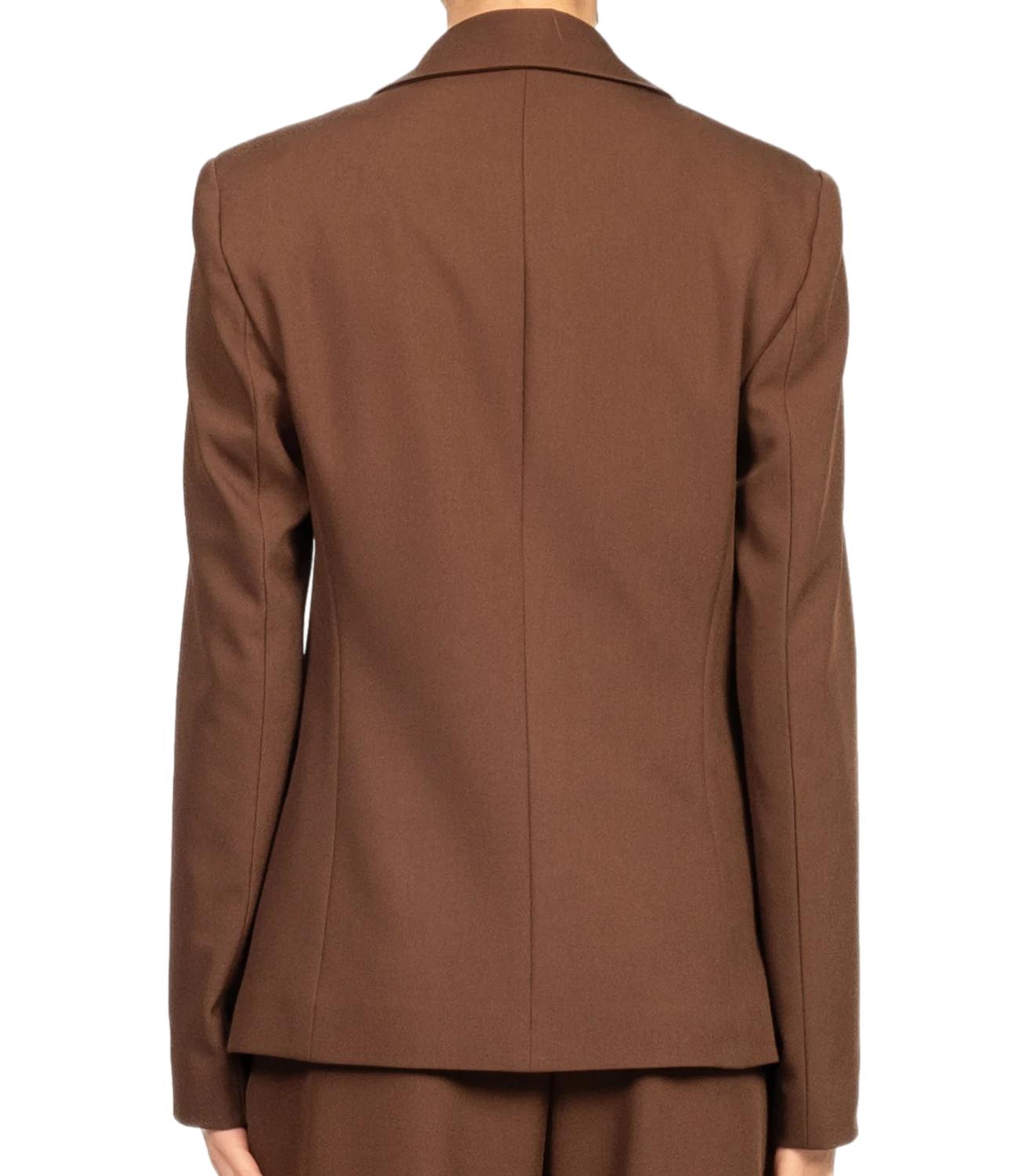 Giacca classica a due bottoni con taglio sartoriale e linea pulita. Leggermente strutturata sulle spalle e sagomata in vita.