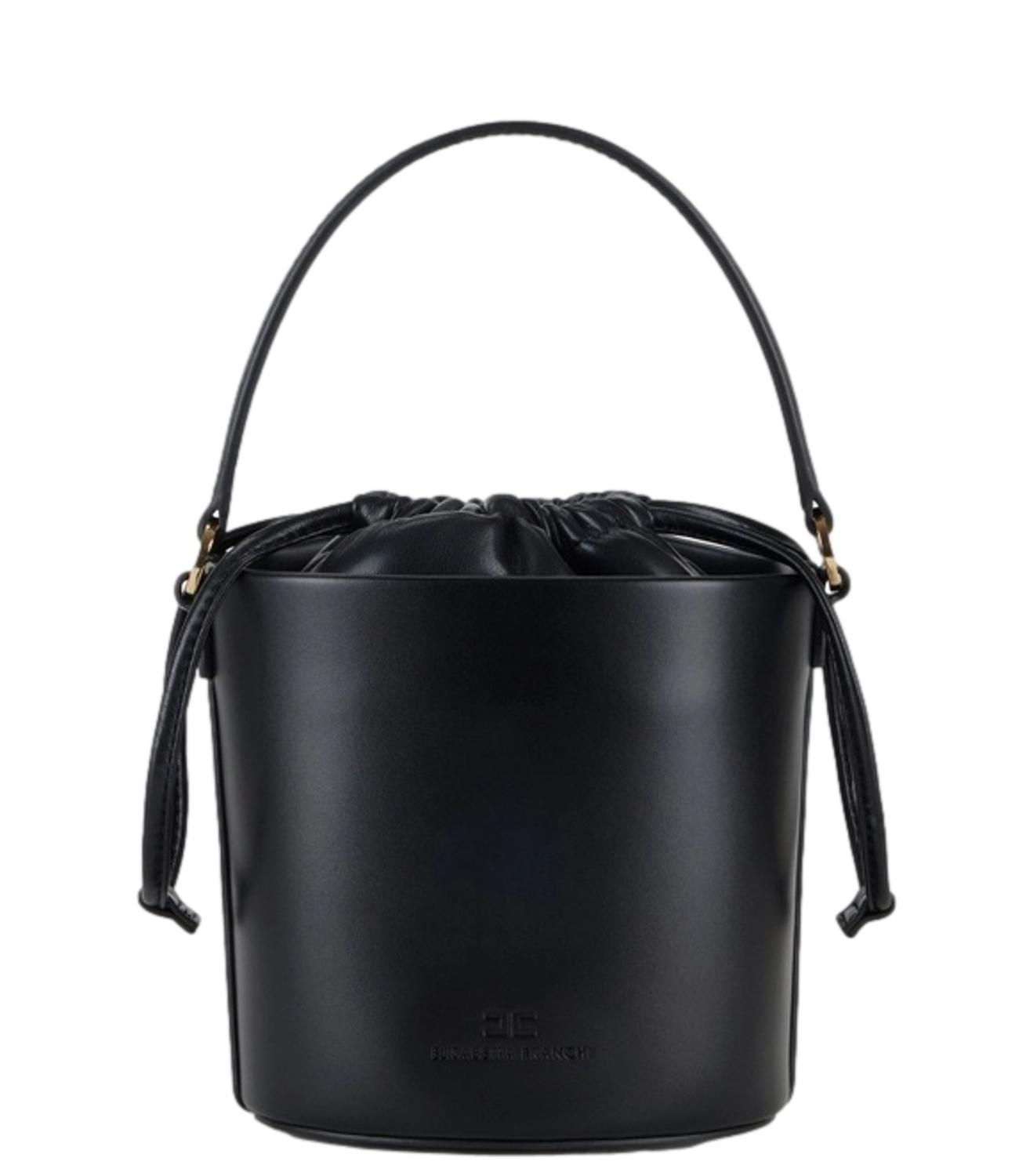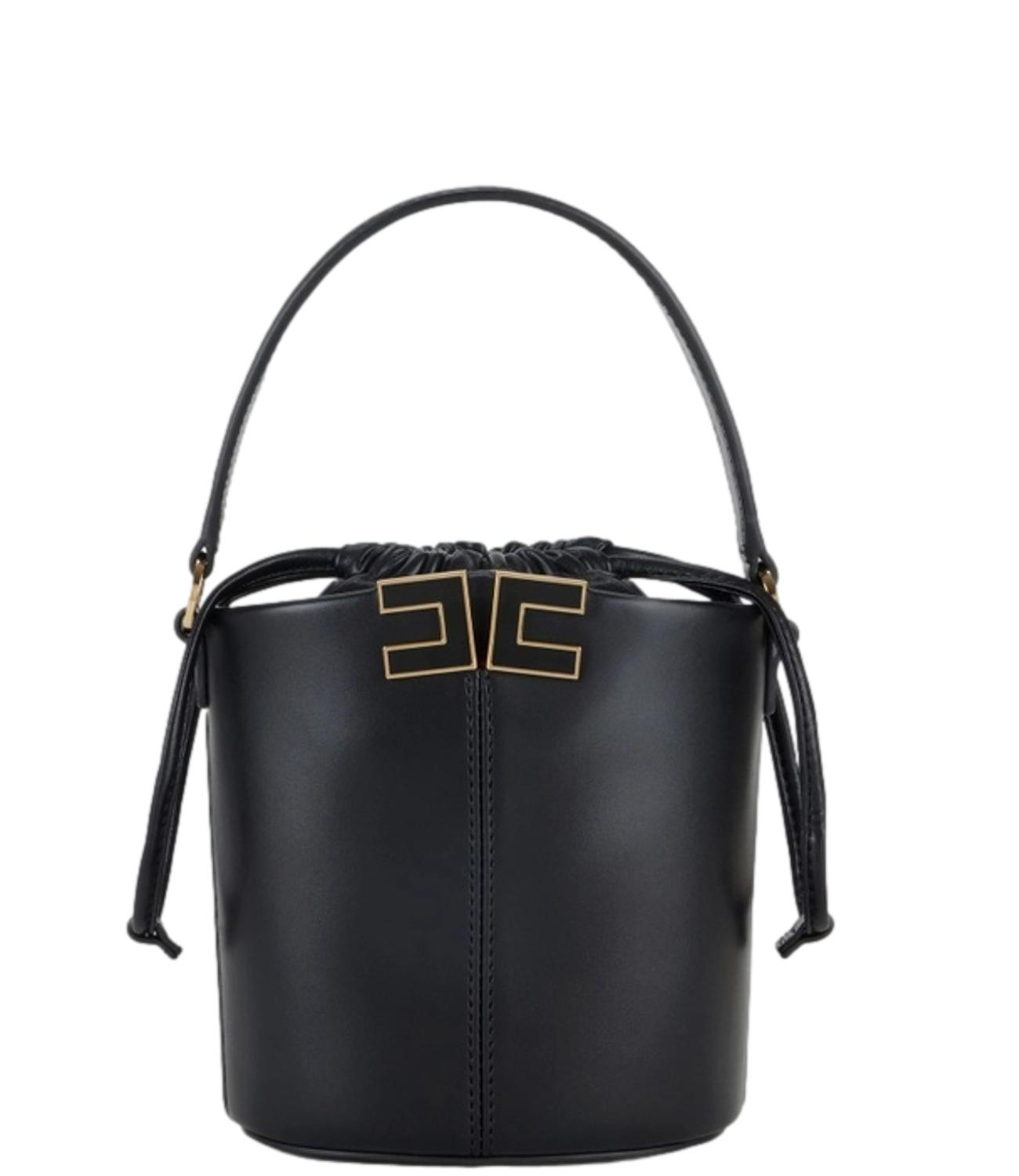 Borsa Elisabetta Franchi a secchiello con dettaglio logo nero e oro con manico e tracolla removibile