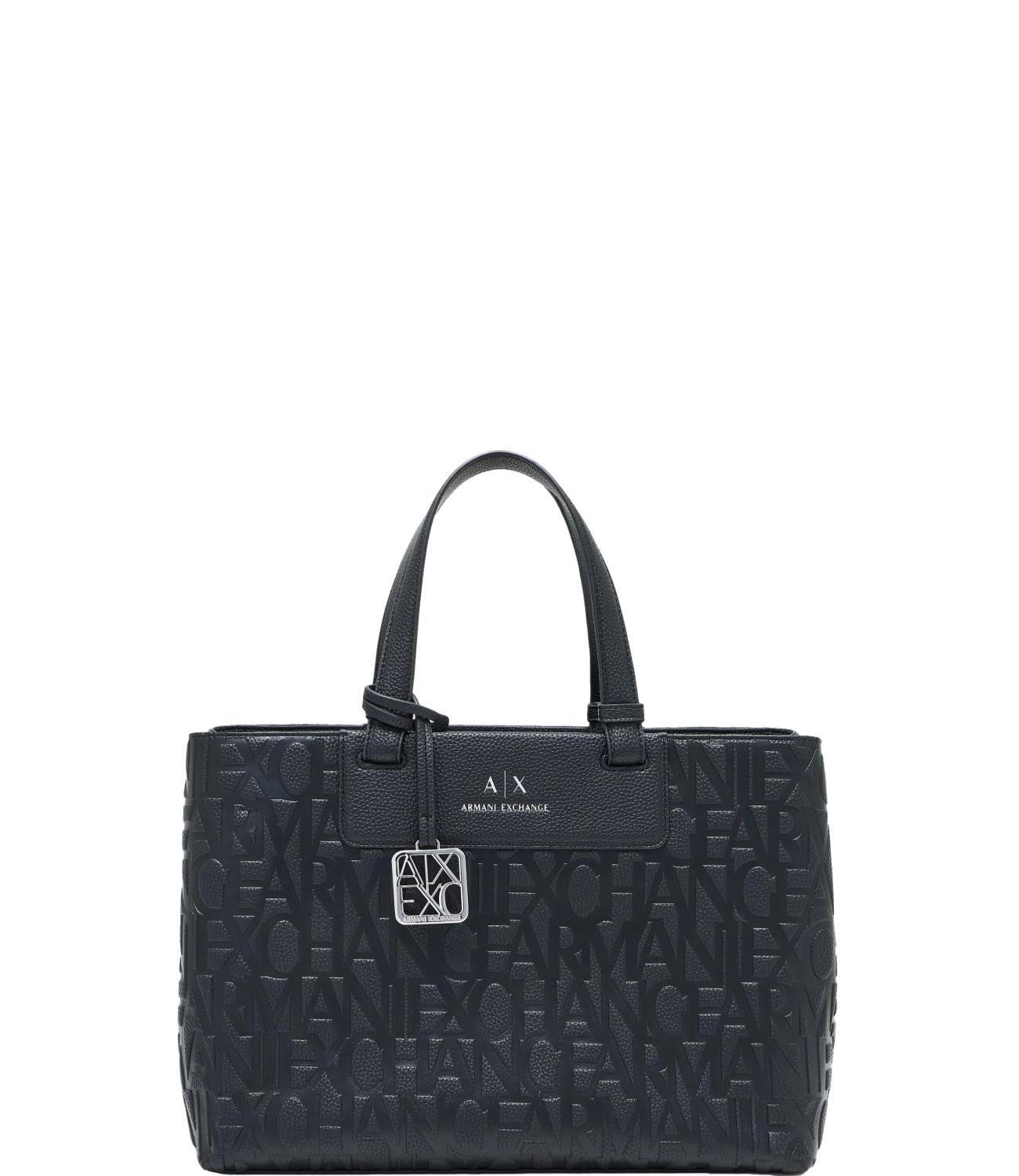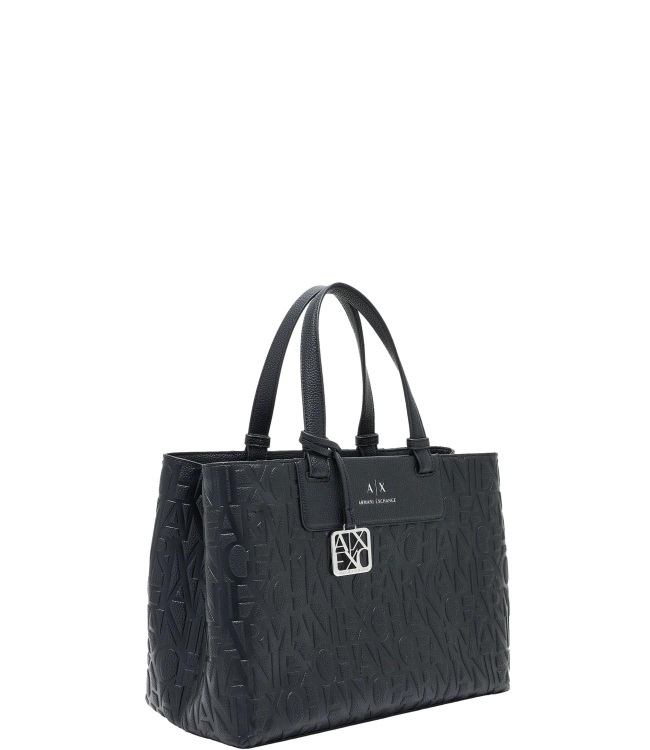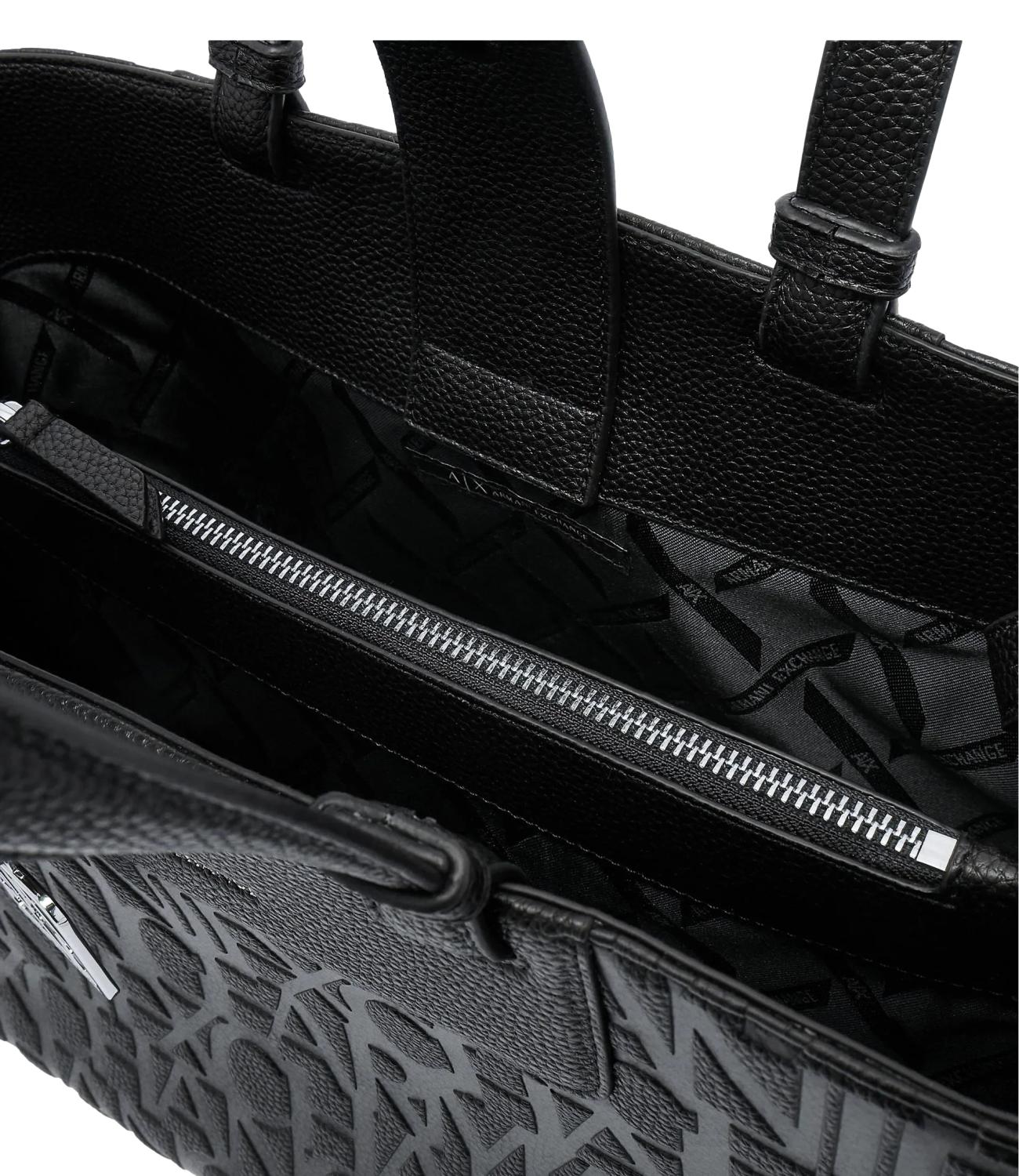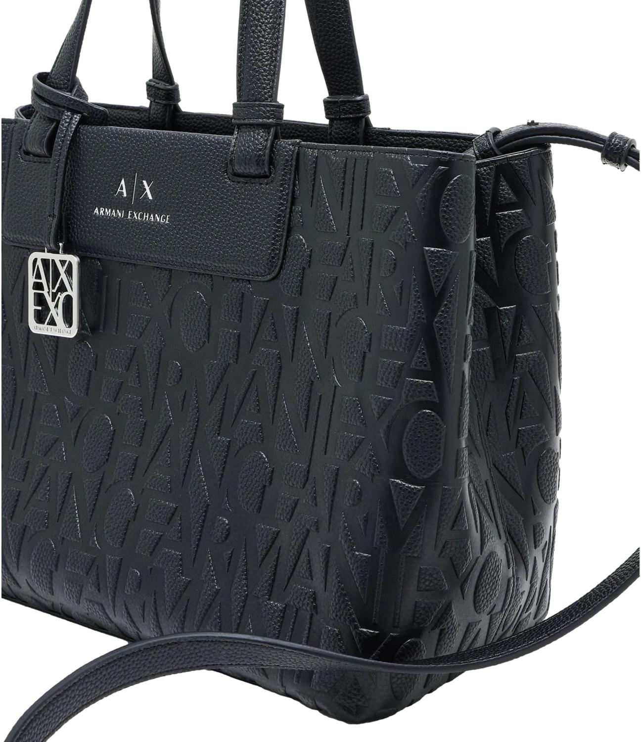 Borsa Armani Exchange nera da donna con loghi scamosciati in rilievo con placca logo, manici e tracolla