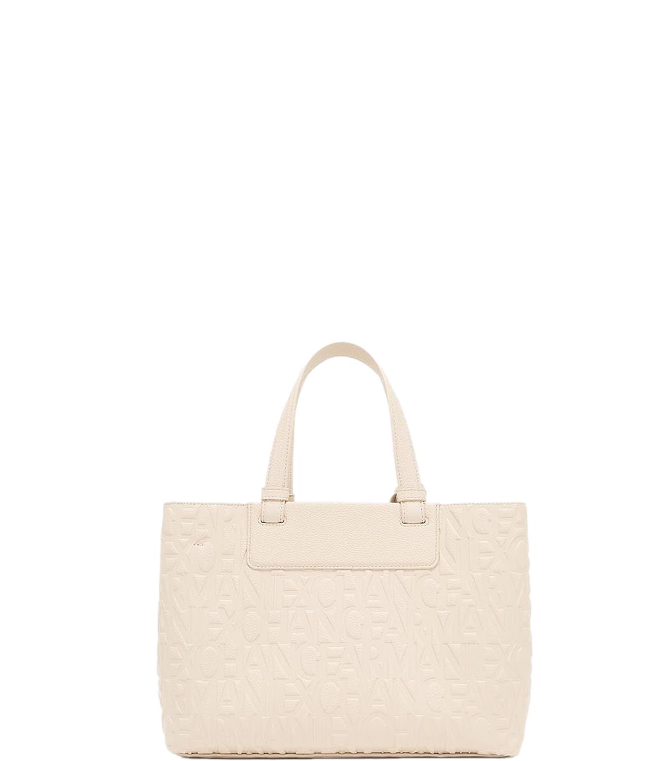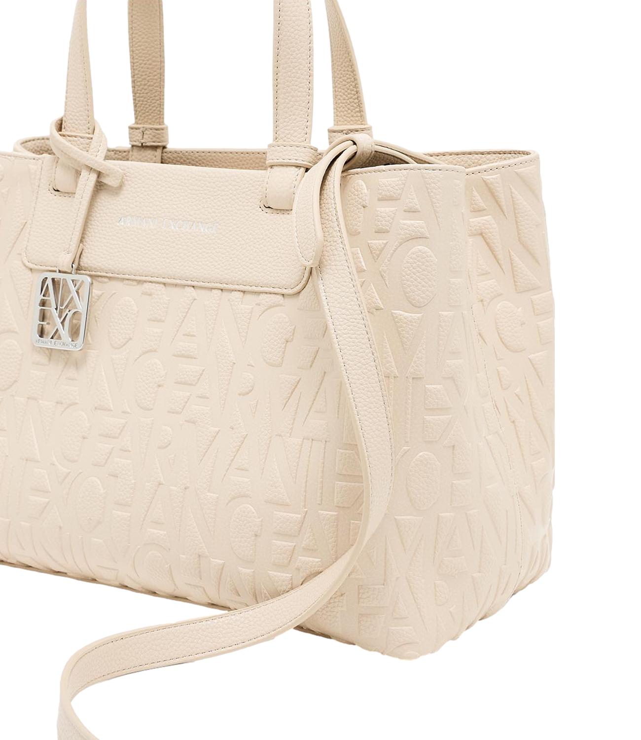 Borsa Armani Exchange piccola da donna con loghi in rilievo e manici, borsetta beige valley e zip