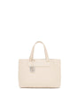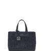 Borsa a mano con logo all-over in rilievo, ideale per chi ama distinguersi con stile. La silhouette strutturata unisce design di tendenza e praticità, grazie ai doppi manici e alla tracolla removibile. I dettagli curati, come il charm logo pendente e la placchetta frontale, completano un accessorio versatile e distintivo.