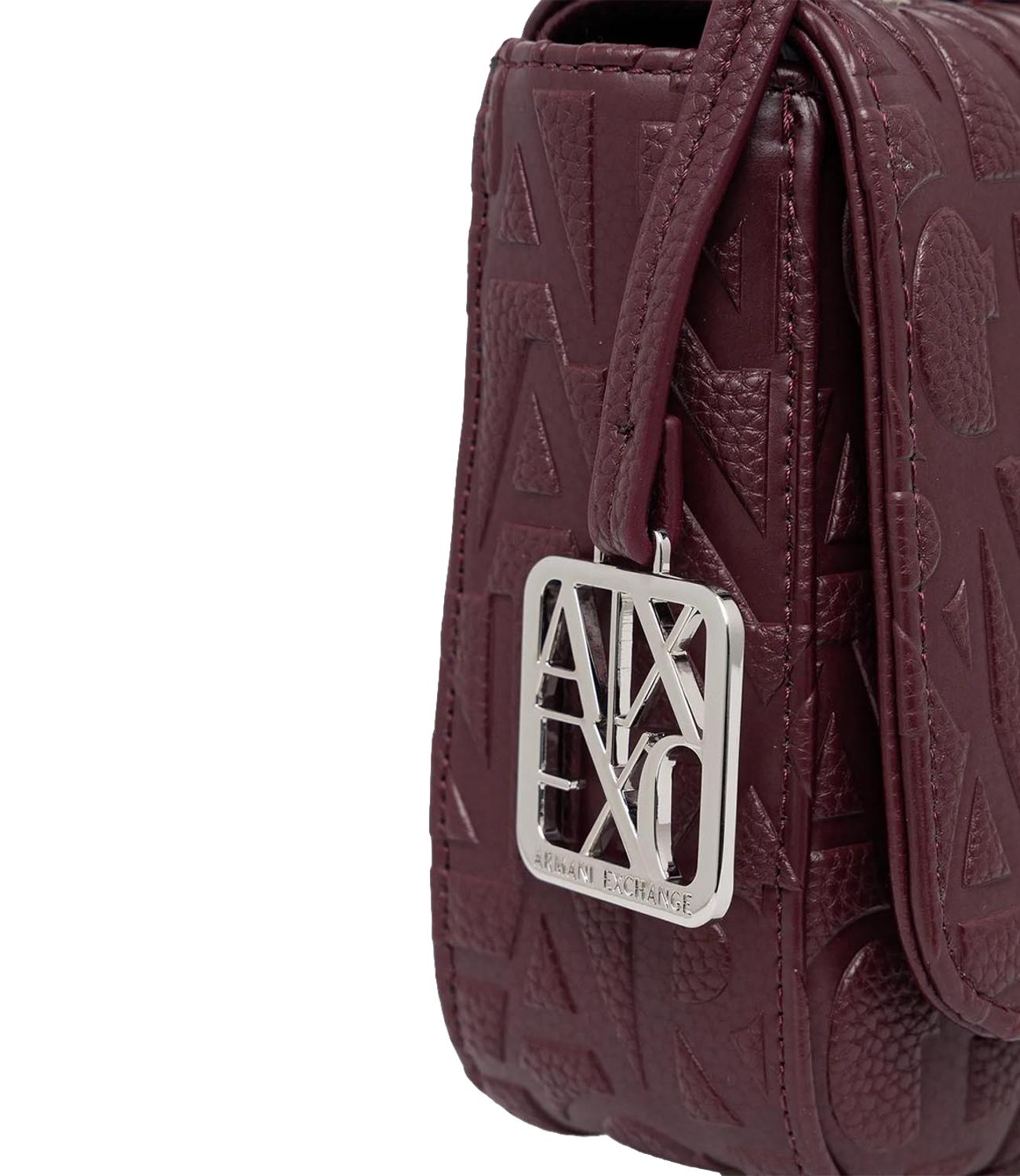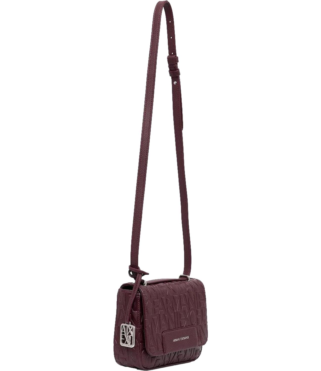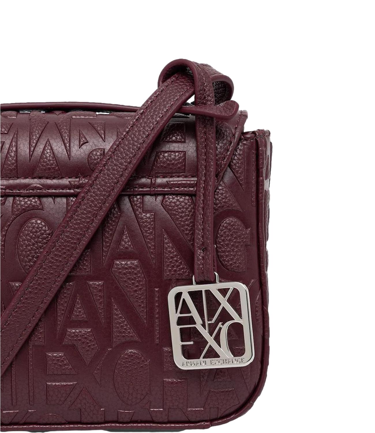 Borsa Armani Exchange tracolla piccola logata in poliuretano idrorepellente con cintina tracolla, colore bordeaux groove