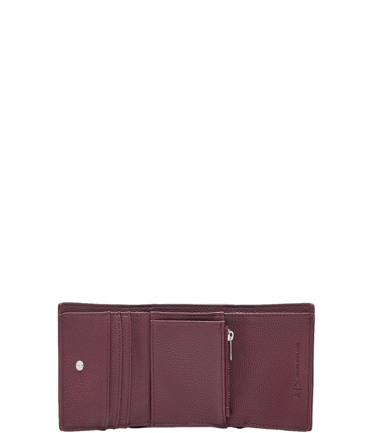 Portafogli Armani Exchange AX color bordeaux ciliegia, portafogli da donna con apertura a tre