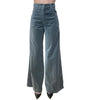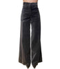 Pantalone in velluto liscio, cotone tinto capo, vita alta, gamba ampia e svasata, cintura e passanti, zip in patta, tasche jeanz anteriore, tasche applicate posteriori.