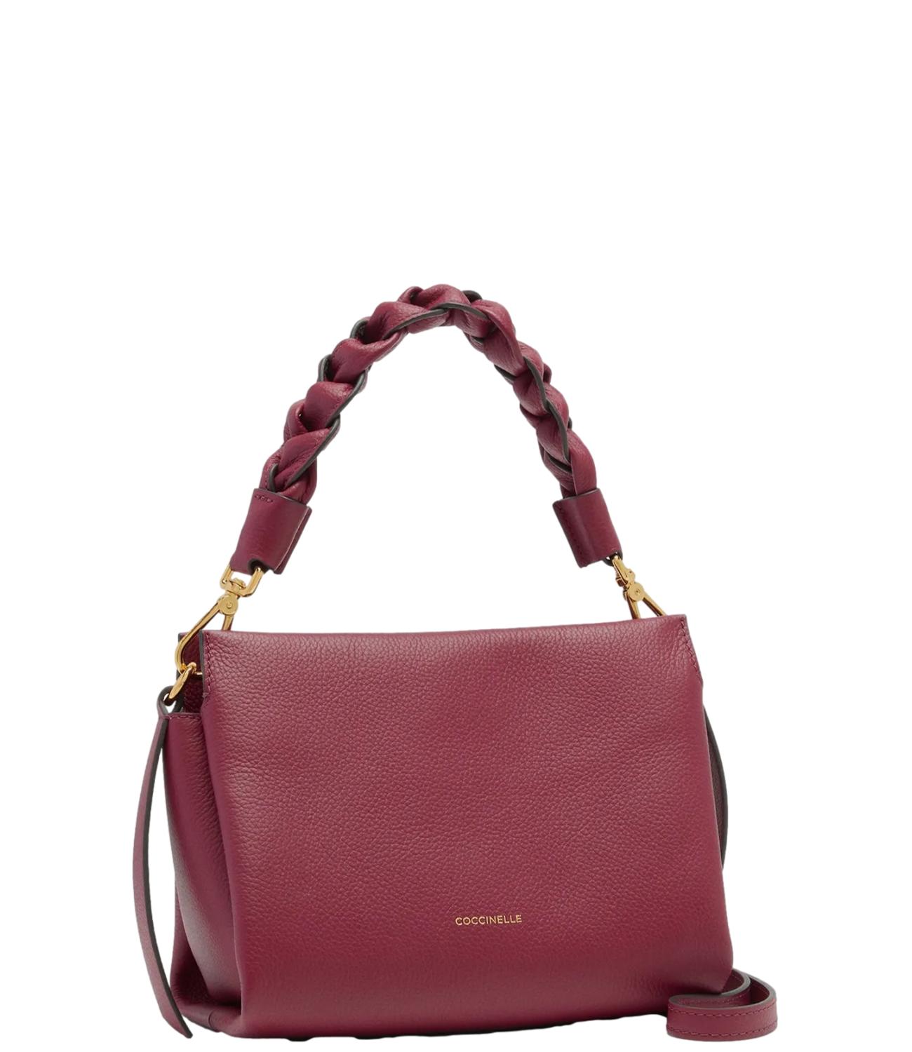 Borsa con tracolla Coccinelle linea Boheme realizzata in pelle double grain nella tonalità del rosso ribes prugna.