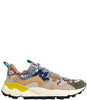 Sneaker in tessuto tecnico e inserti in suede multicolor. Occhielli rinforzati e lacci trek. Soletta interna in sughero naturale antibatterico, fondo in gomma ultra leggera con battistrada dentellato.