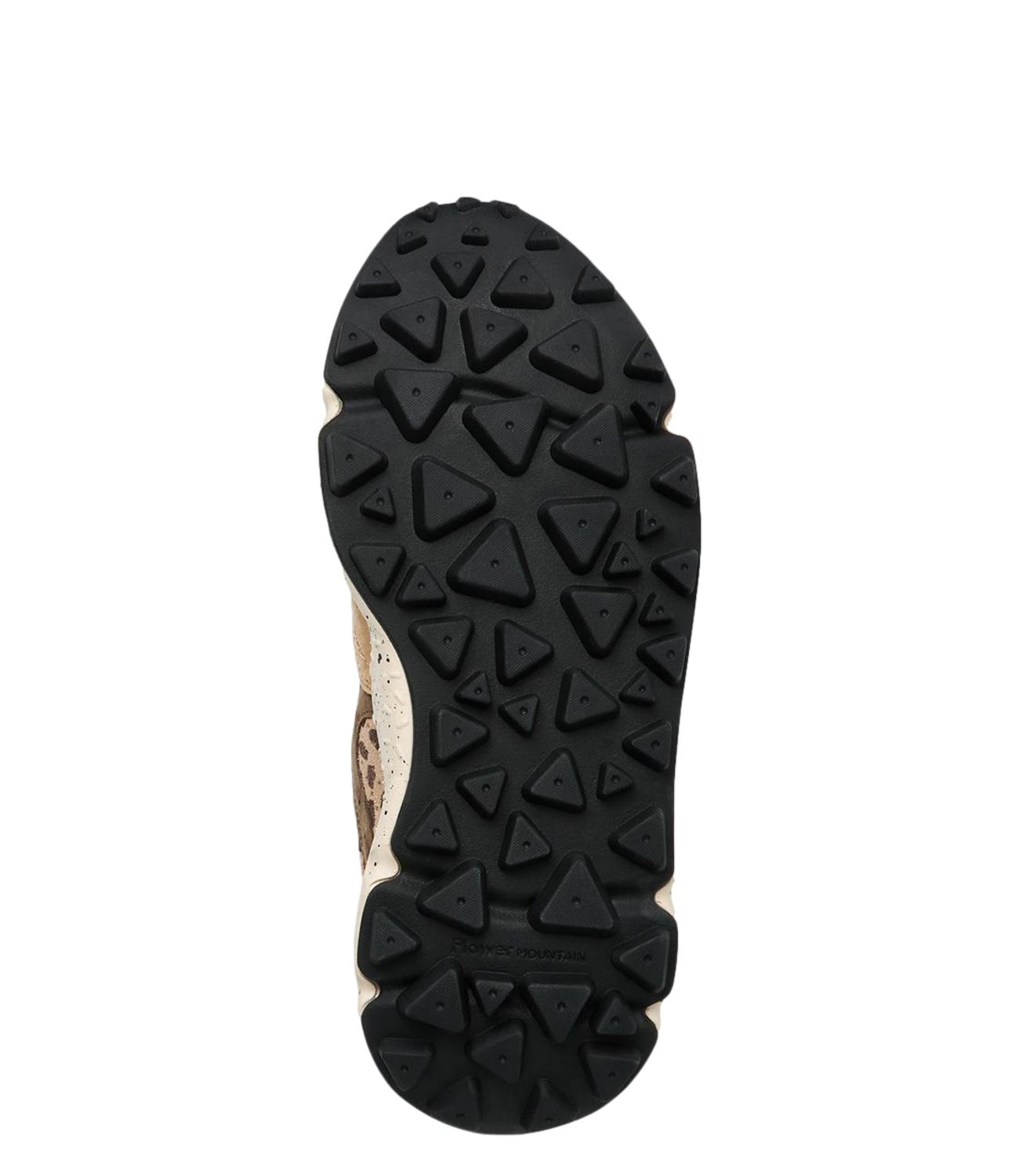Sneaker in tessuto tecnico e inserti in suede full color e con stampa animalier. Occhielli rinforzati e lacci trek. Soletta interna in sughero naturale antibatterico, fondo in gomma ultra leggera con battistrada dentellato.