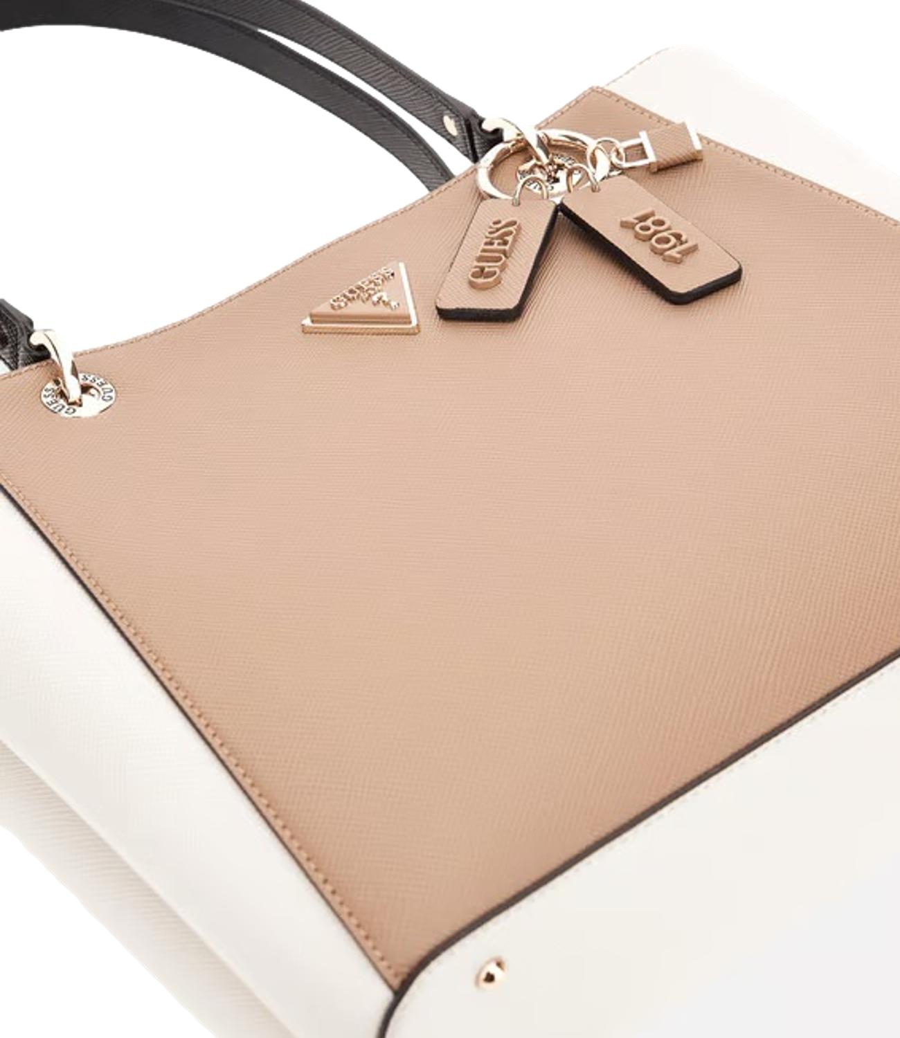 Guess borsa a spalla Noelle II Tote in saffiano con charm logato