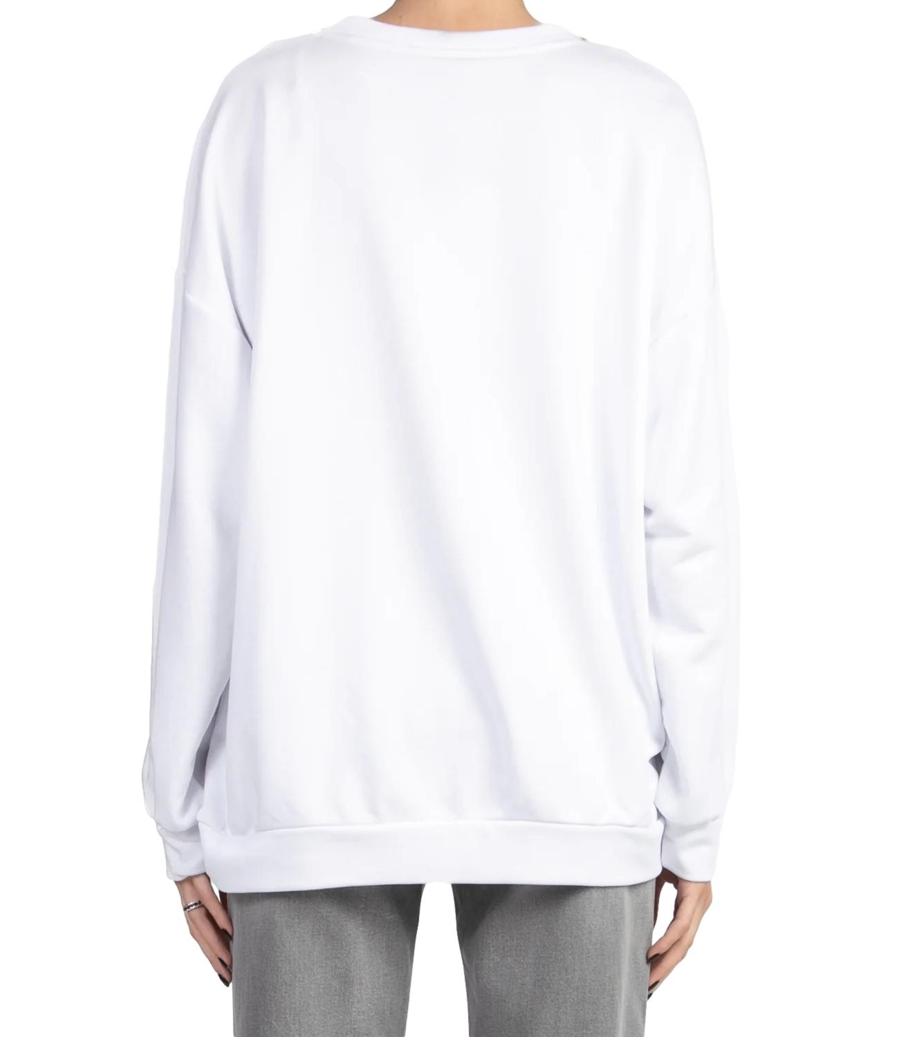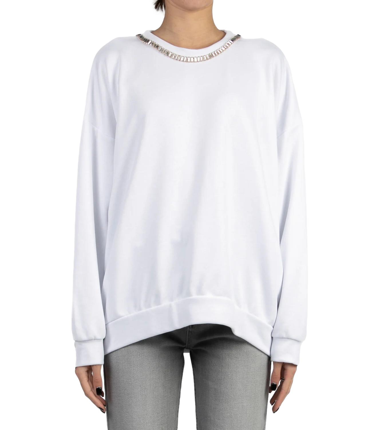 Felpa girocollo con applicazioni gioiello, realizzata in tessuto garzato all'interno per un comfort extra. La vestibilità over offre un look rilassato e moderno, mentre i dettagli gioiello aggiungono un tocco di eleganza e brillantezza. Perfetta per un outfit casual-chic, è ideale per chi cerca stile senza rinunciare al comfort.