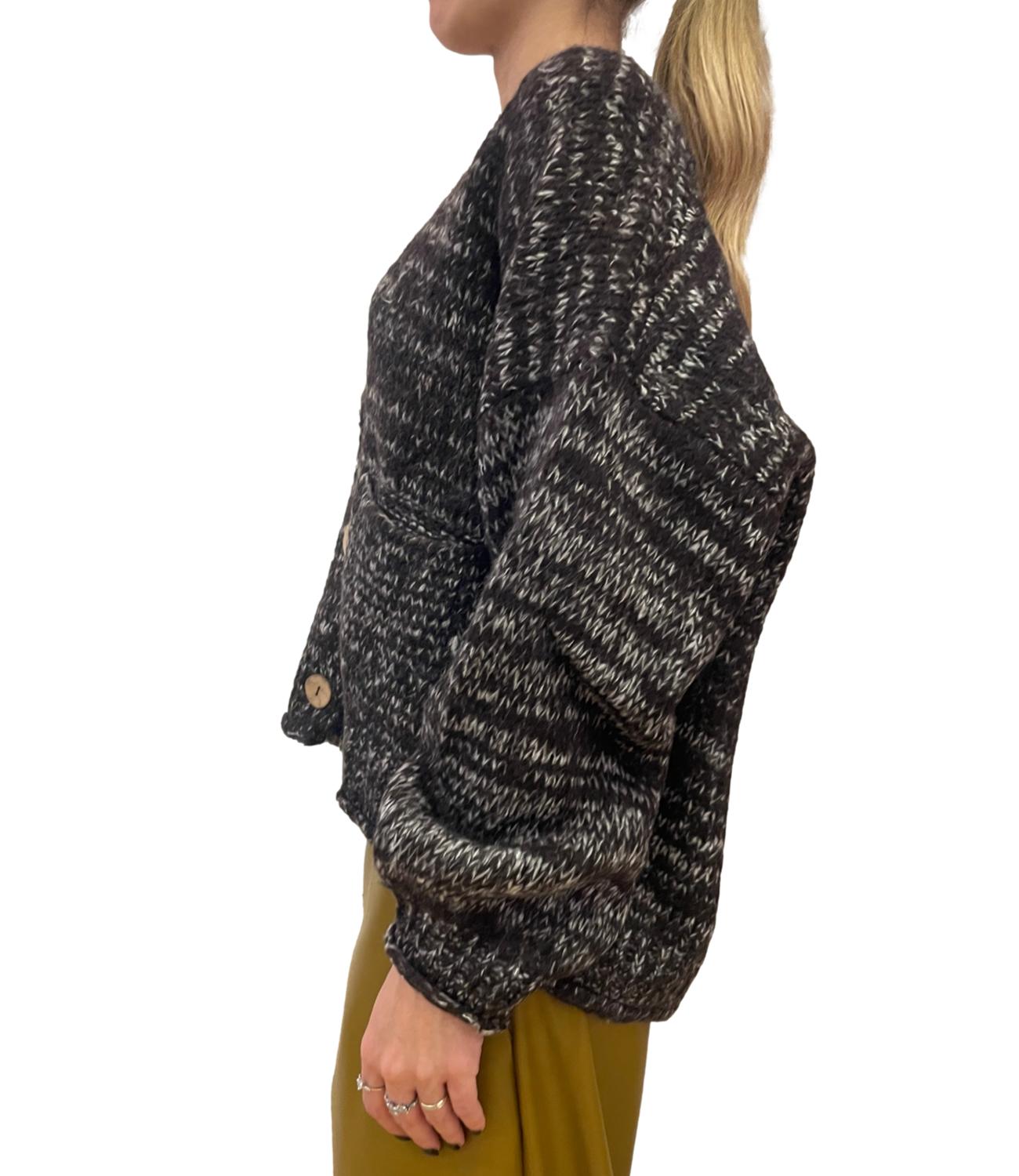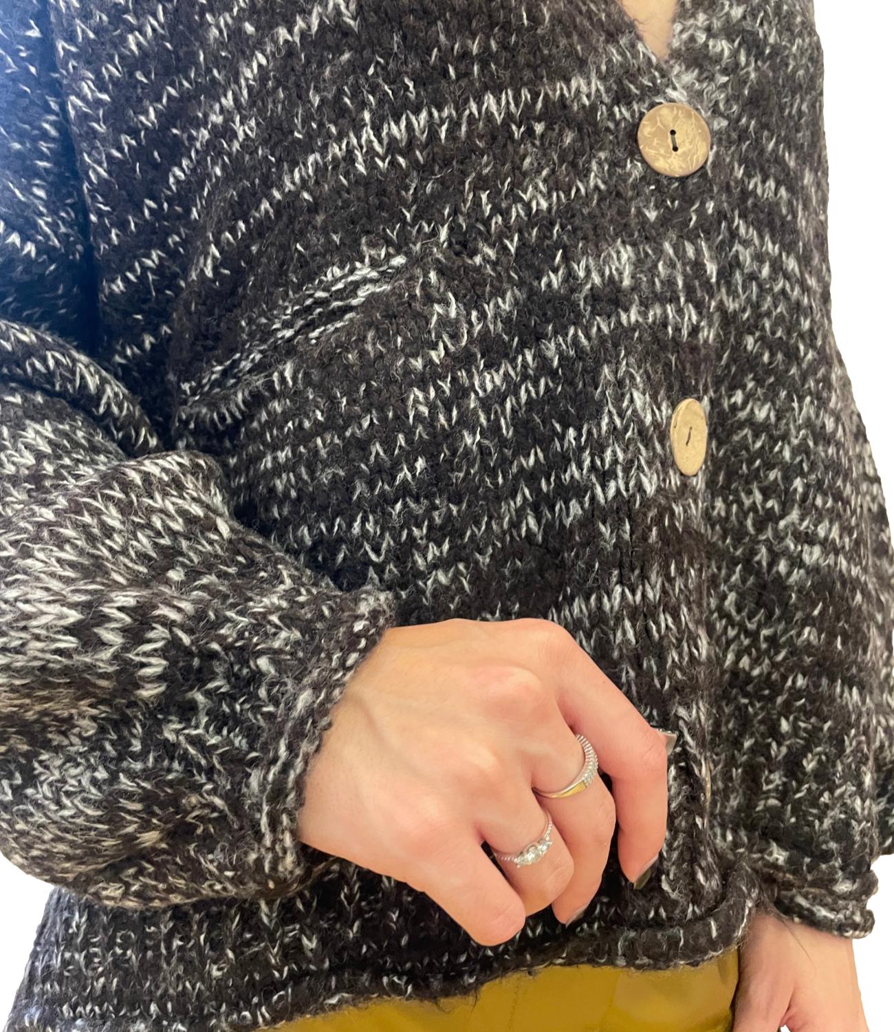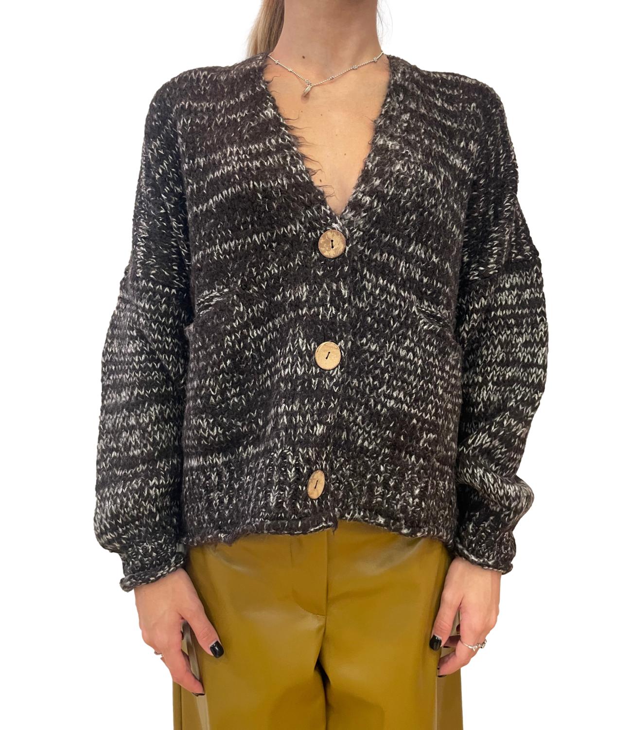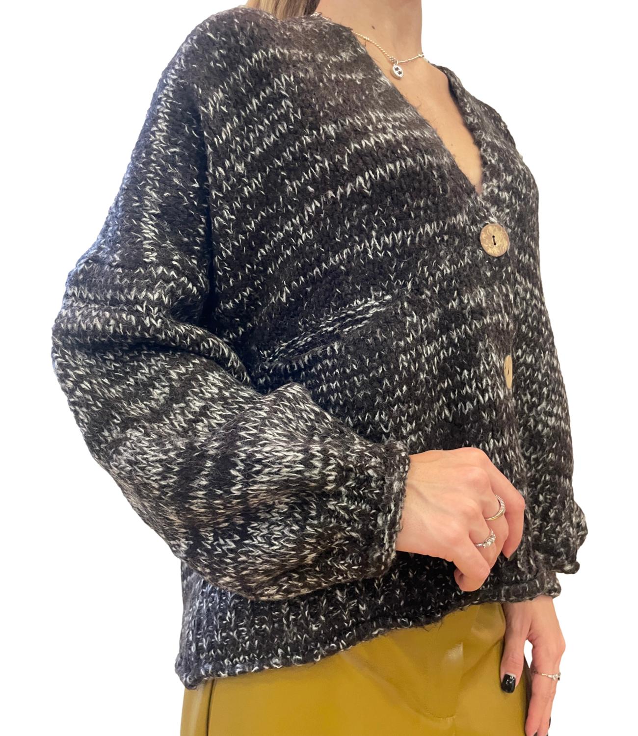 Cardigan 3 bottoni modello sciallato con tasche sul davanti