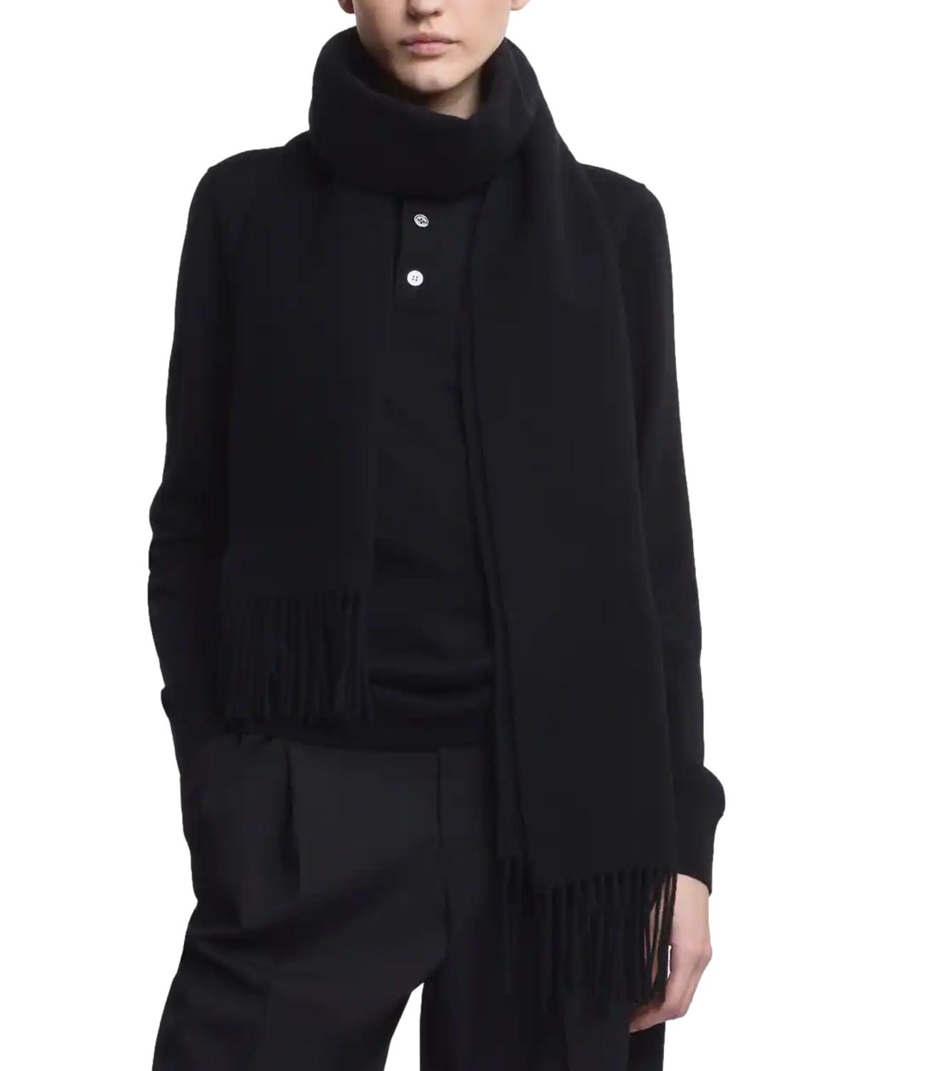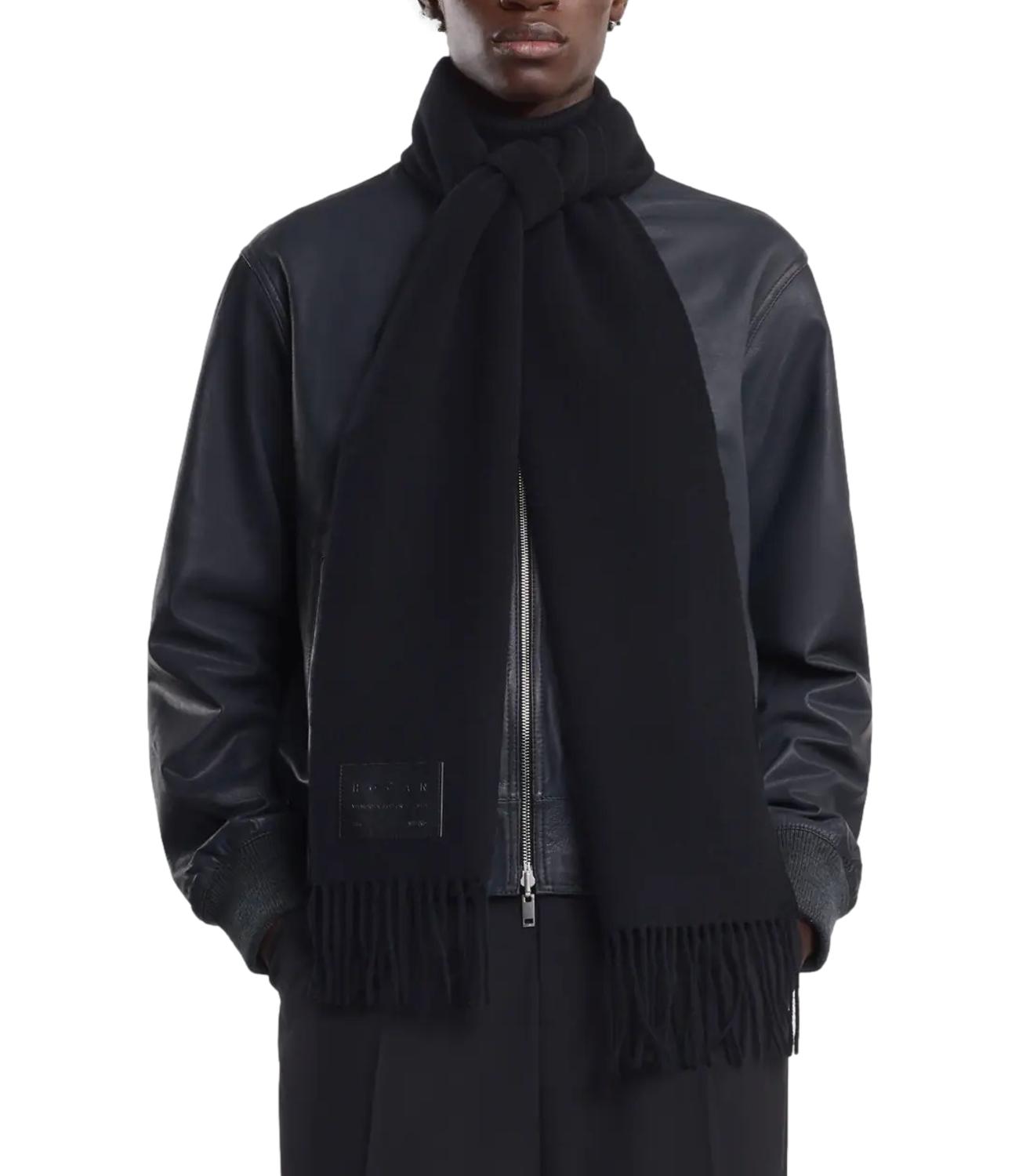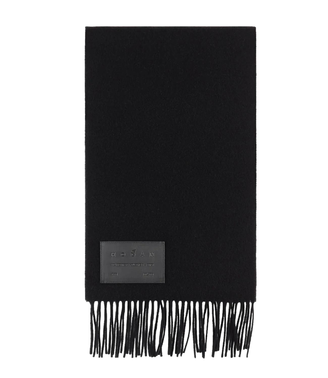 Hogan Sciarpa Nera uomo donna in lana con frange e placca logo nera