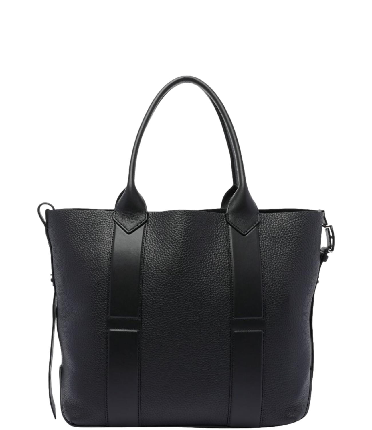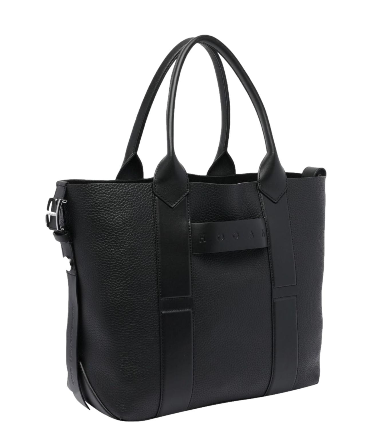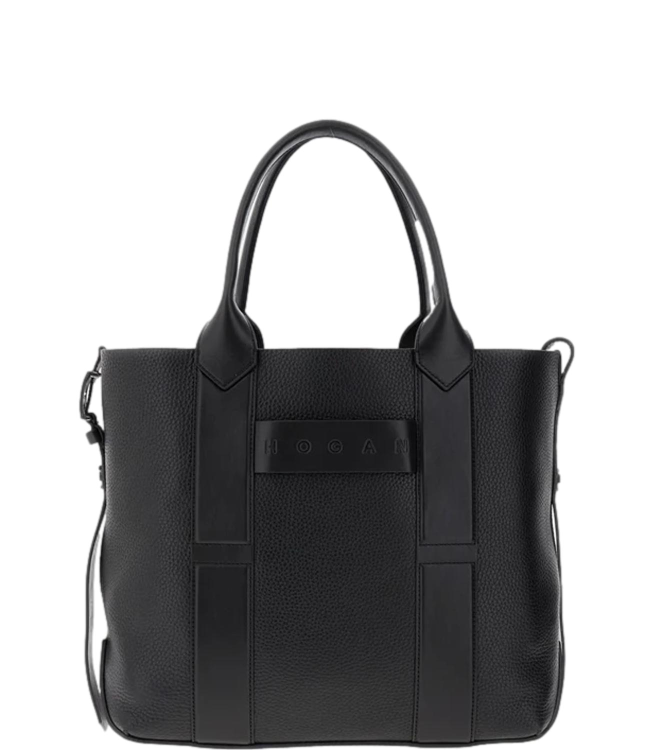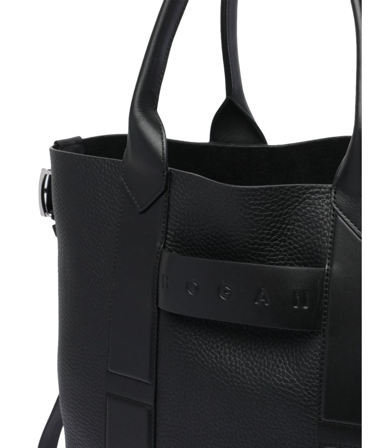 Borsa tote shopping Hogan nera in pelle martellata con manici e logo nero