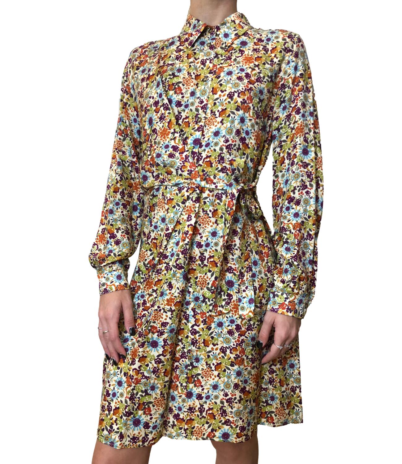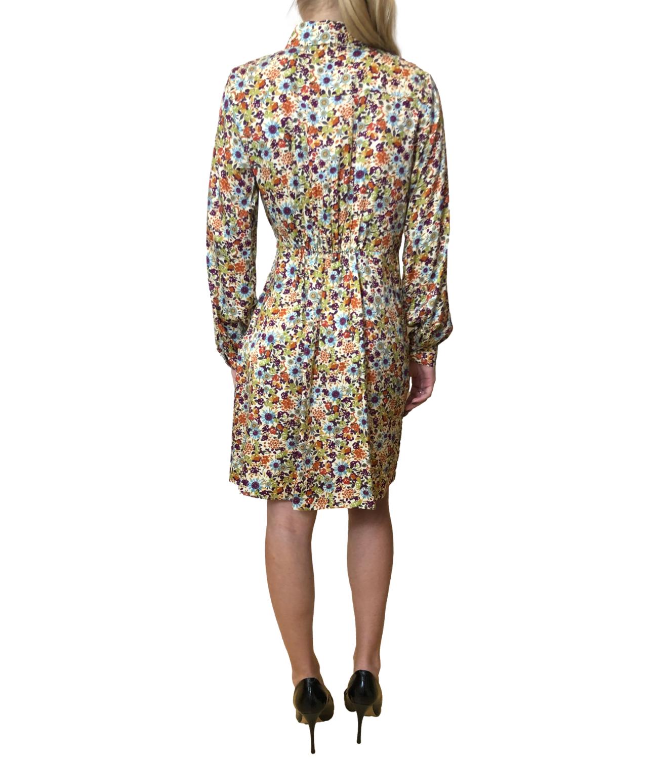 Chiusura con bottoni sul top, fiocco laterale sulla gonna
