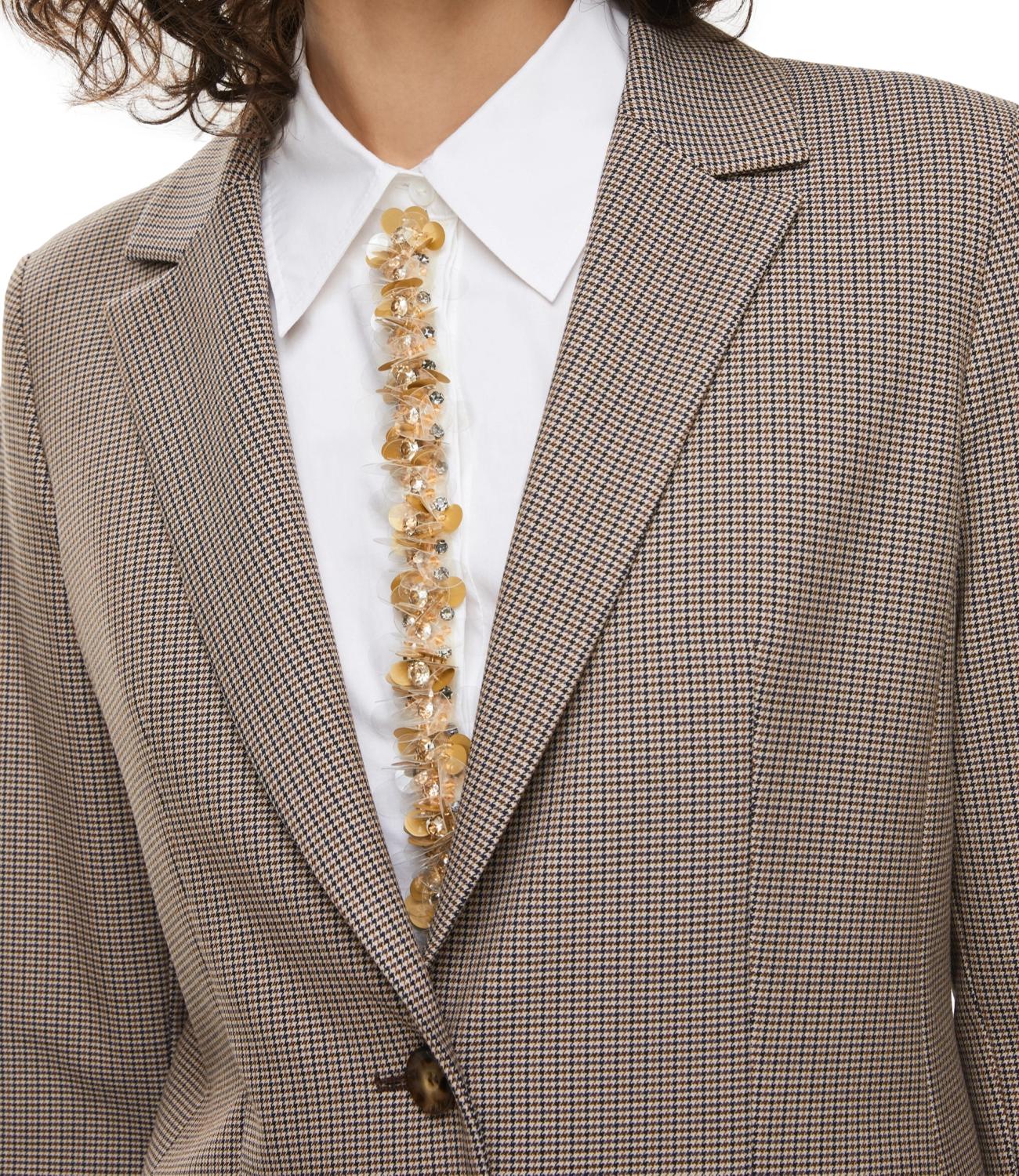 Composizione: Tessuto 63% poliestere, 34% viscosa, 3% elastan; fodera 64% acetato, 36% poliestere.