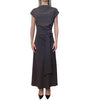 Scopri un vestito lungo che rappresenta l'essenza della sofisticazione metropolitana. Il design senza maniche abbinato a un scollo asimmetrico e una cintura in vita aggiunge un tocco di classe e raffinatezza. Perfetto per chi cerca un look distintivo.