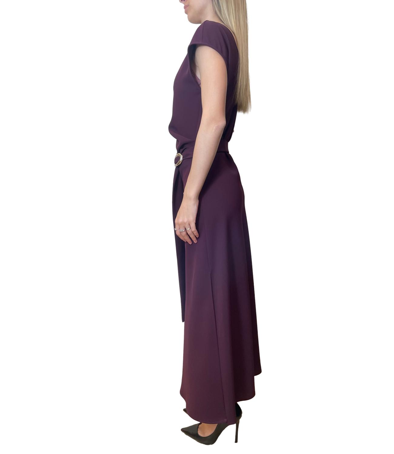 Scopri un vestito lungo che rappresenta l'essenza della sofisticazione metropolitana. Il design senza maniche abbinato a un scollo asimmetrico e una cintura in vita aggiunge un tocco di classe e raffinatezza. Perfetto per chi cerca un look distintivo.
