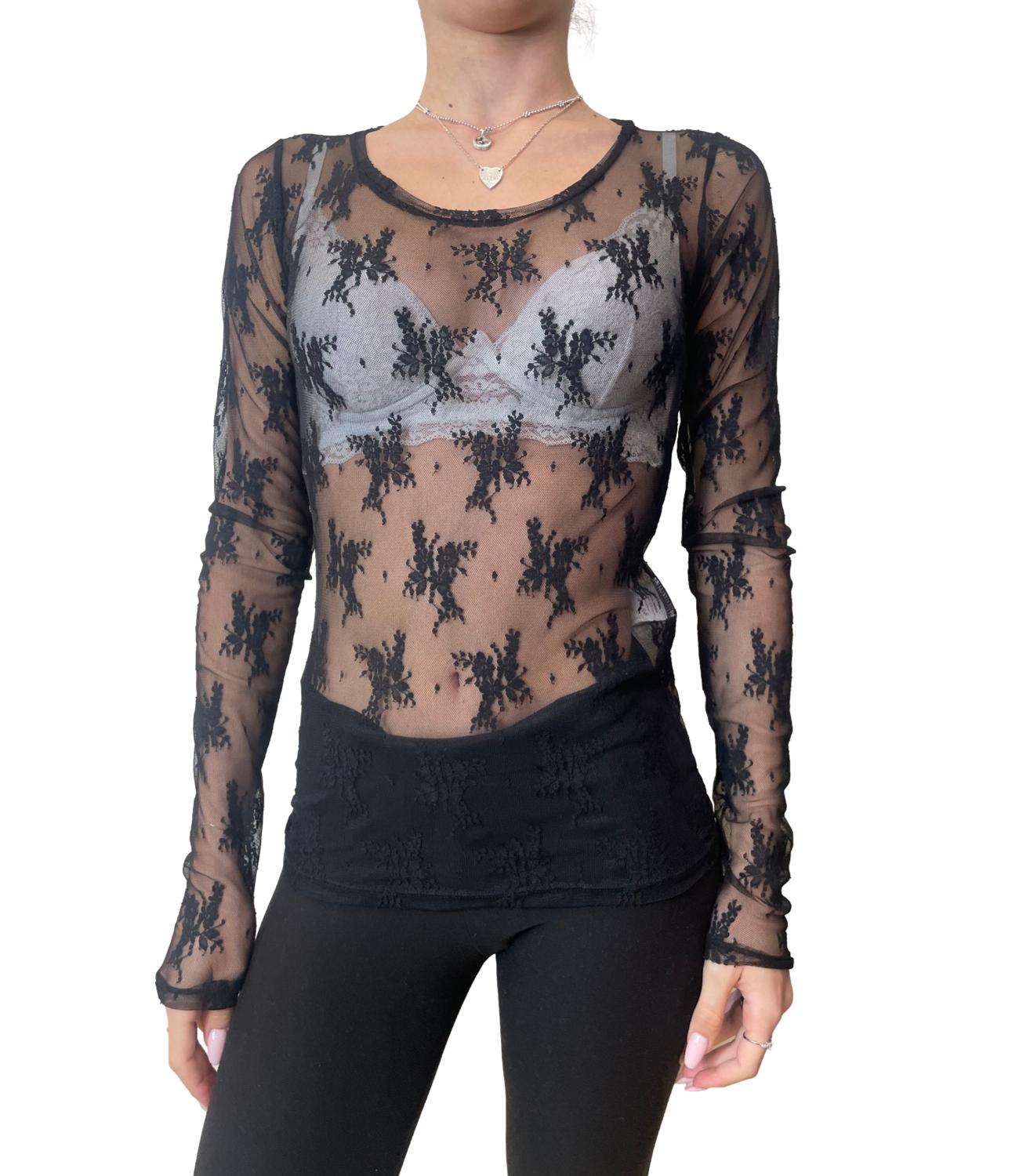Imperial t-shirt in pizzo trasparente a manica lunga