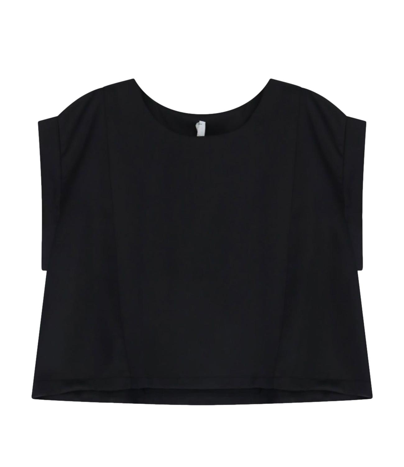 Top dalle linee essenziali con taglio corto e ampio, caratterizzato da scollo rotondo e spalle marcate. Un capo versatile, pensato per creare abbinamenti contemporanei e distinguersi attraverso una selezione cromatica ricercata. Ideale per chi desidera sperimentare combinazioni stilistiche personali.