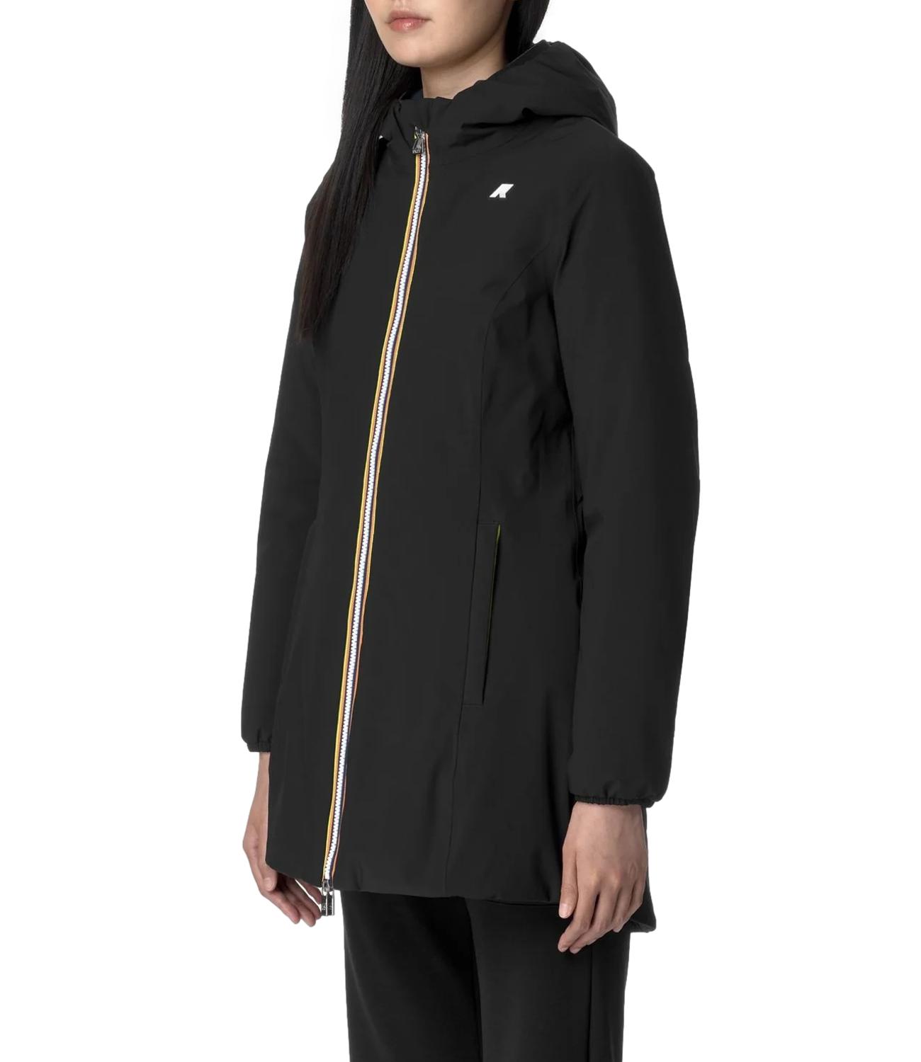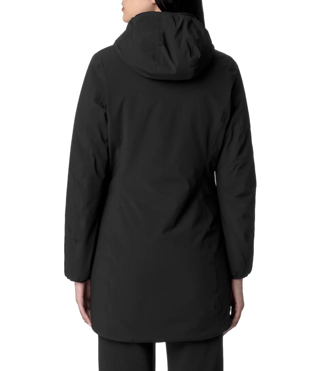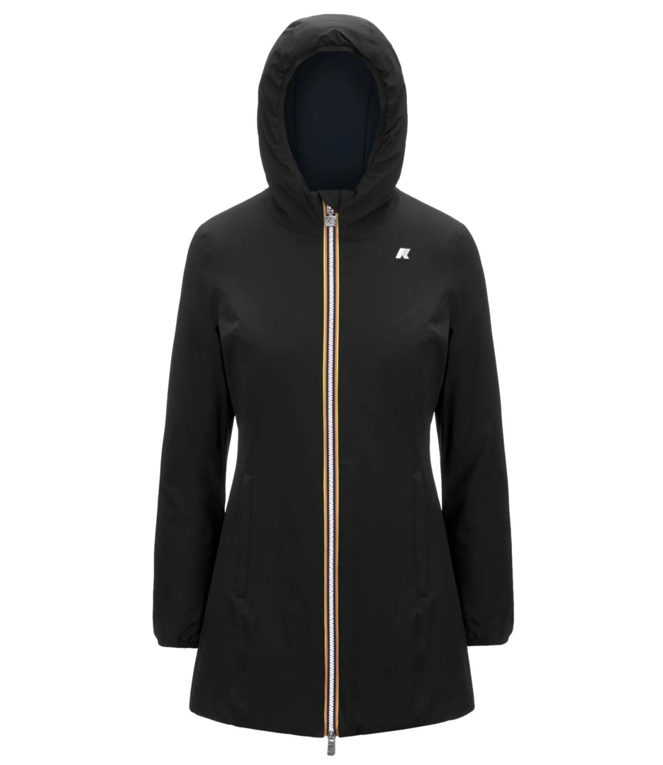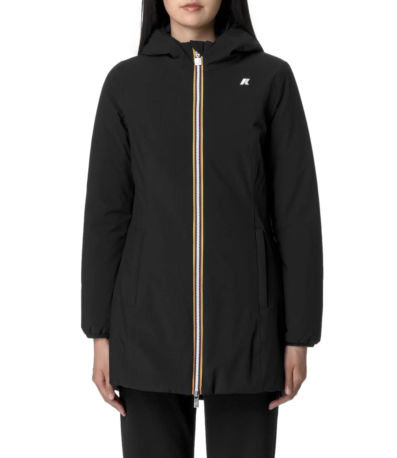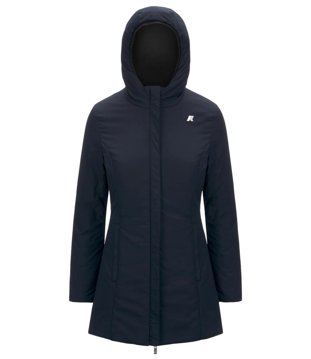 Denise è la giacca da donna con lunghezza a tre quarti che reinterpreta l'ispirazione funzionale K-Way in chiave femminile. Il modello combina un lato in poliestere elasticizzato impermeabile tinta unita e un lato in poliestere antivento dal colore a contrasto. L'imbottitura in ovatta offre un grado di calore medio, ideale per la mezza stagione, mentre le cuciture termonastrate isolano dal freddo e offrono maggiore comfort durante l'attività outdoor.
