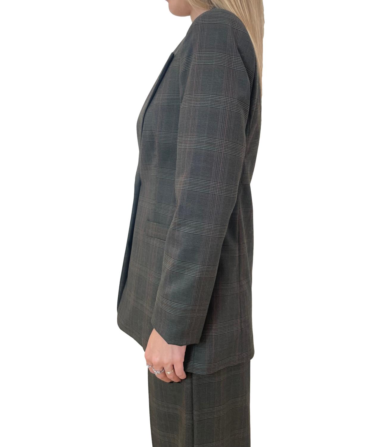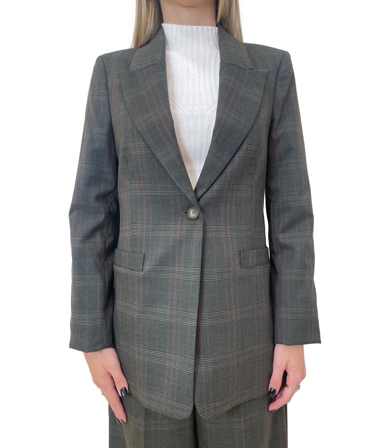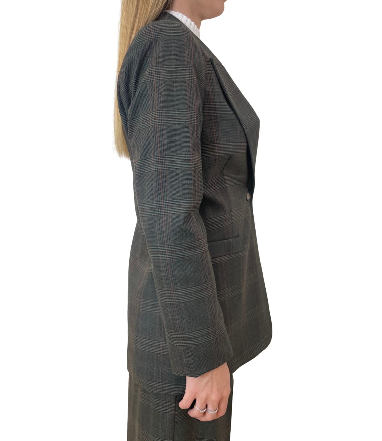 Blazer Kontatto dal taglio dritto con spalle definite, studiato per una silhouette asciutta ma comoda. Tessuto check in misto viscosa dalla mano compatta. Rever a lancia e chiusura monopetto valorizzano il punto vita; tasche a filetto per un finish pulito. Perfetto per l'ufficio e gli aperitivi post-work.