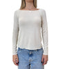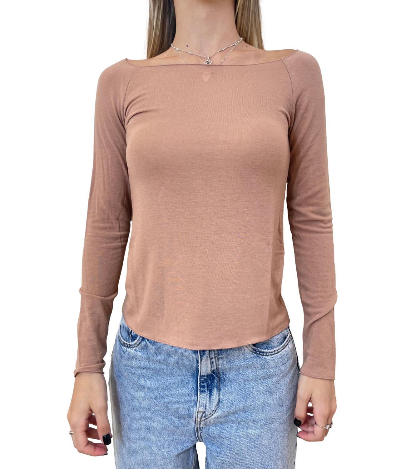 Semplice e raffinato, questo maglione a maniche lunghe dal taglio essenziale esalta la femminilità con una scollatura elegante e linee pulite.