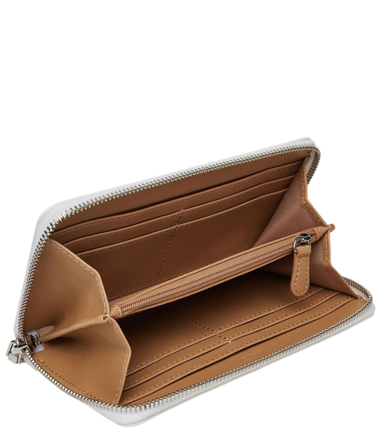 Love Moschino portafogli in pelle sintetica con zip around e maxi logo lettering in metallo argento