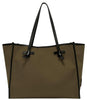 Marcella By Gianni Chiarini shopper realizzata in tela canvas nella tonalità del verde ed impreziosita dalle finiture in pelle nera. Da indossare agevolmente a spalla