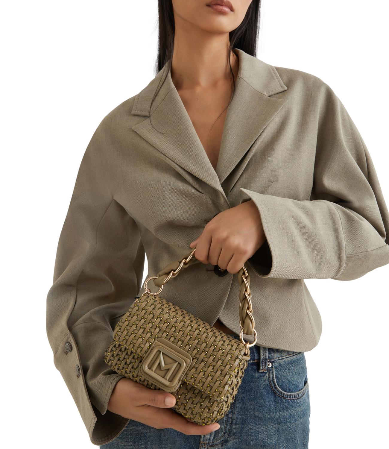 Borsa Le Muse piccola in tessuto intrecciato su rete di strass