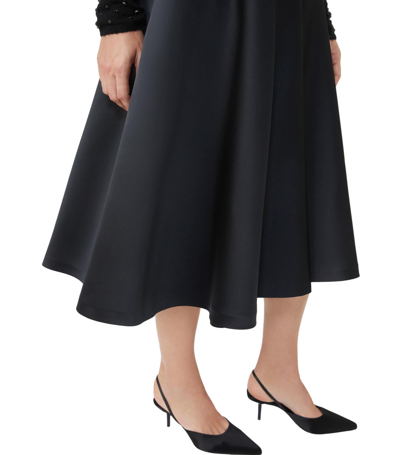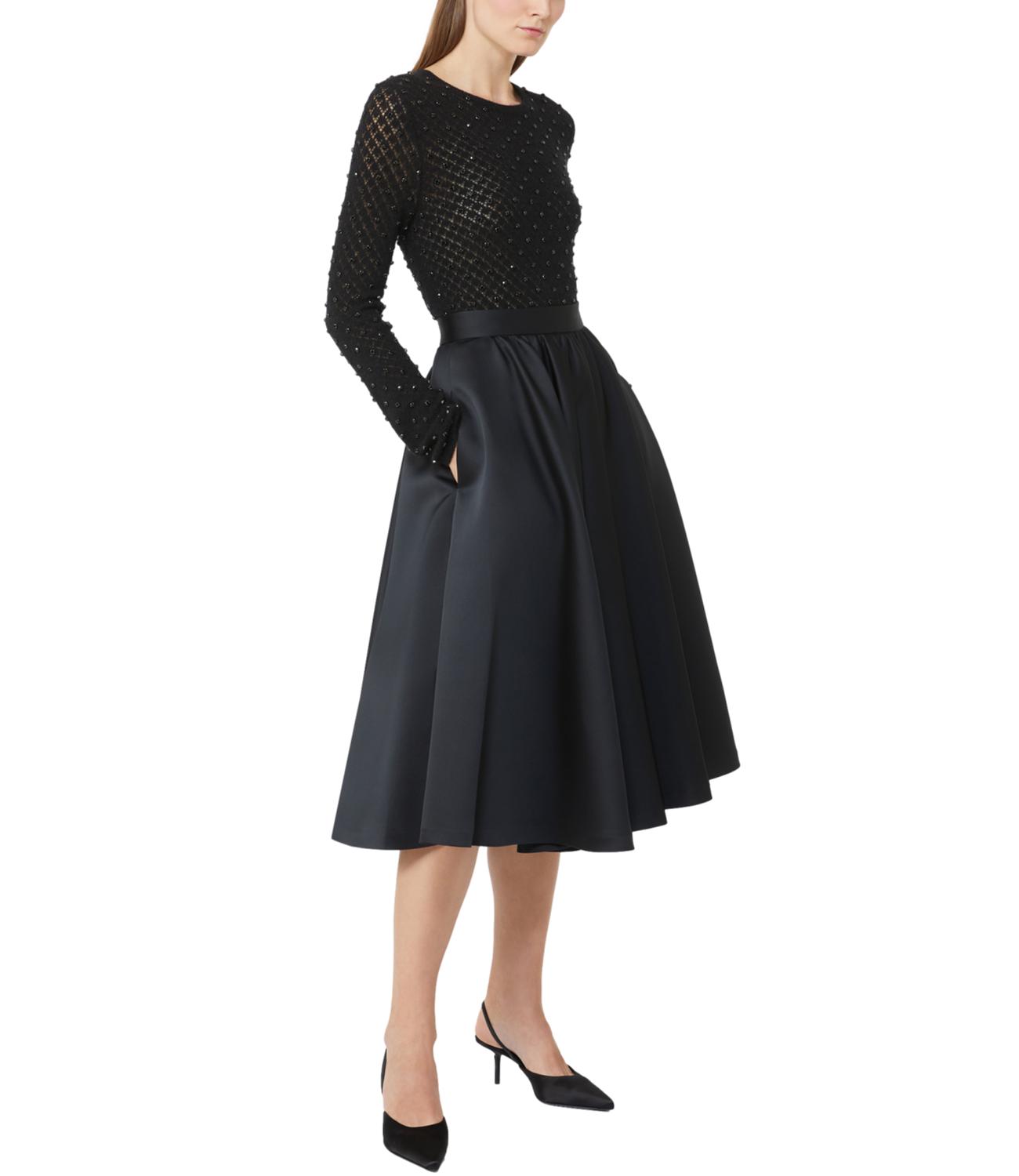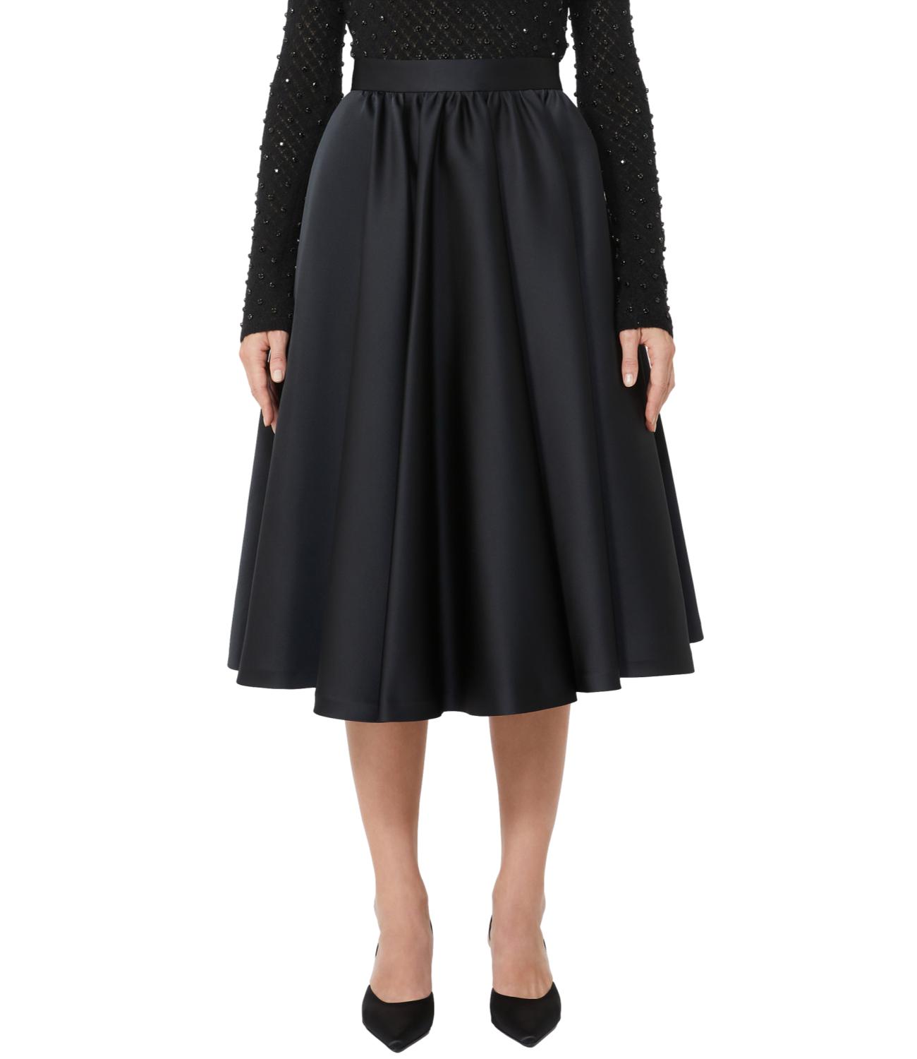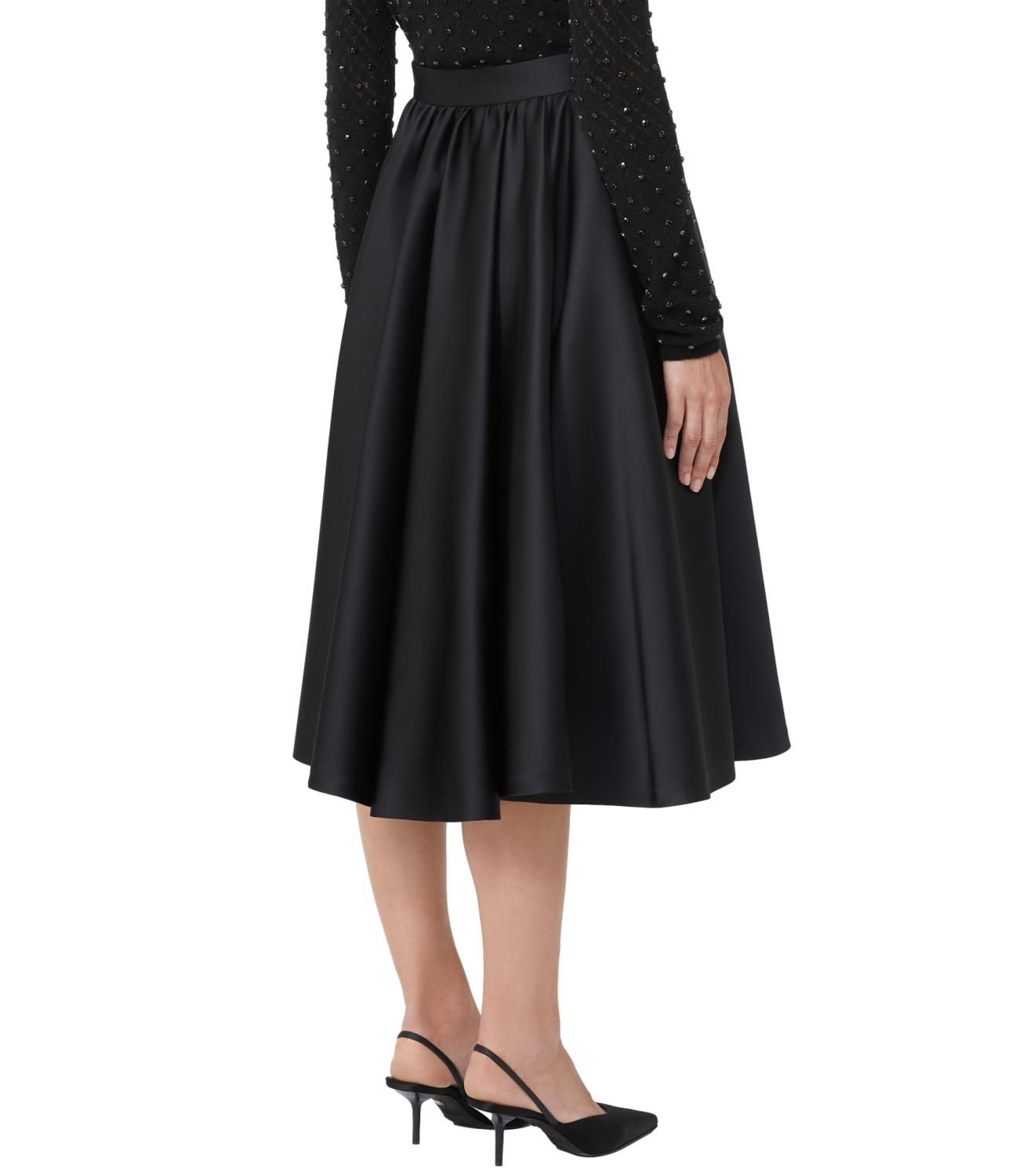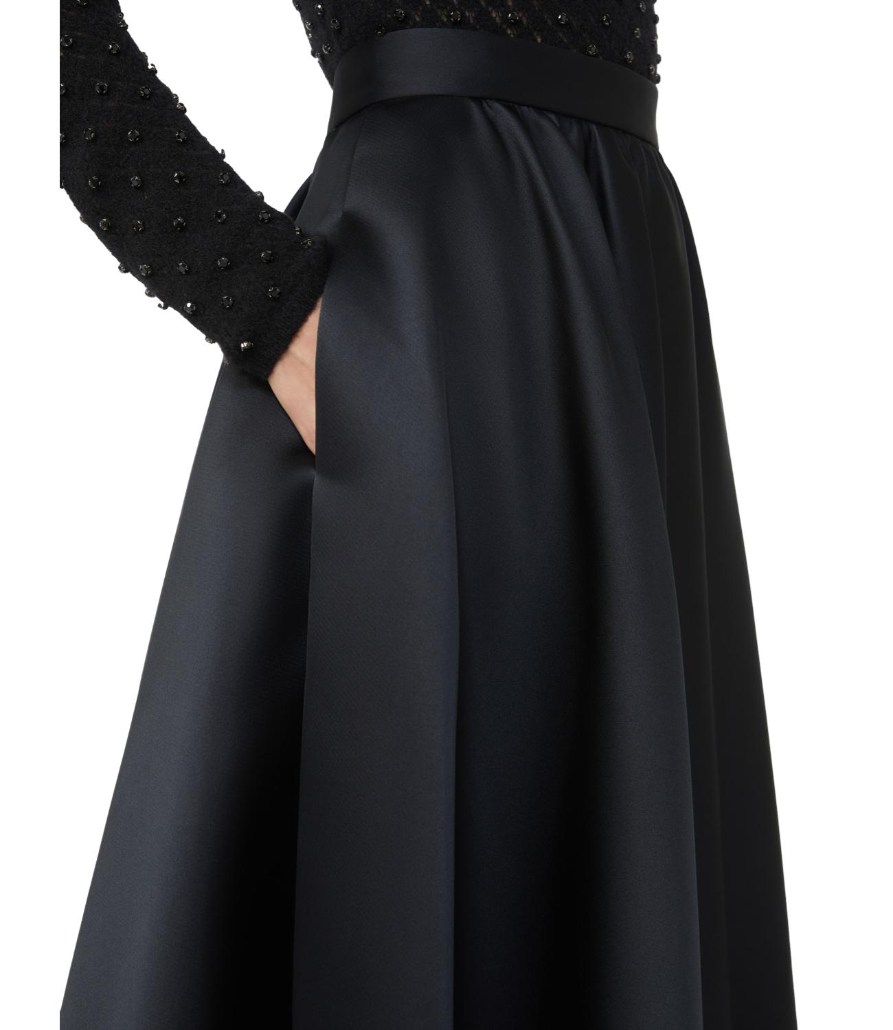 Un modello dall'allure couture, caratterizzato da una silhouette a corolla che esalta femminilità e movimento. Realizzata in duchesse strutturato, mette in risalto la forma donando eleganza e presenza scenica.
