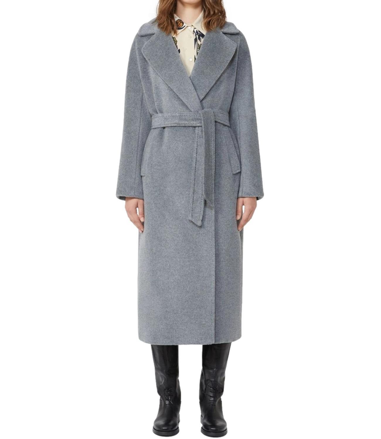 Cappotto lungo dalla silhouette a vestaglia con cintura abbinata in vita.