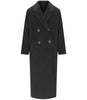 Cappotto lungo doppiopetto realizzato in tessuto di mista lana e alpaca. Modello foderato dalla linea a uovo caratterizzato da dettagli sartoriali: collo a rever, tasche a filettone sui fianchi, maniche lunghe a giro e spacco centrale sul retro. Chiusura con bottoni.