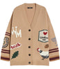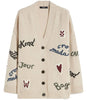 Cardigan overfit, impreziosito da una lavorazione ad intarsio con disegni sul davanti e le maniche.