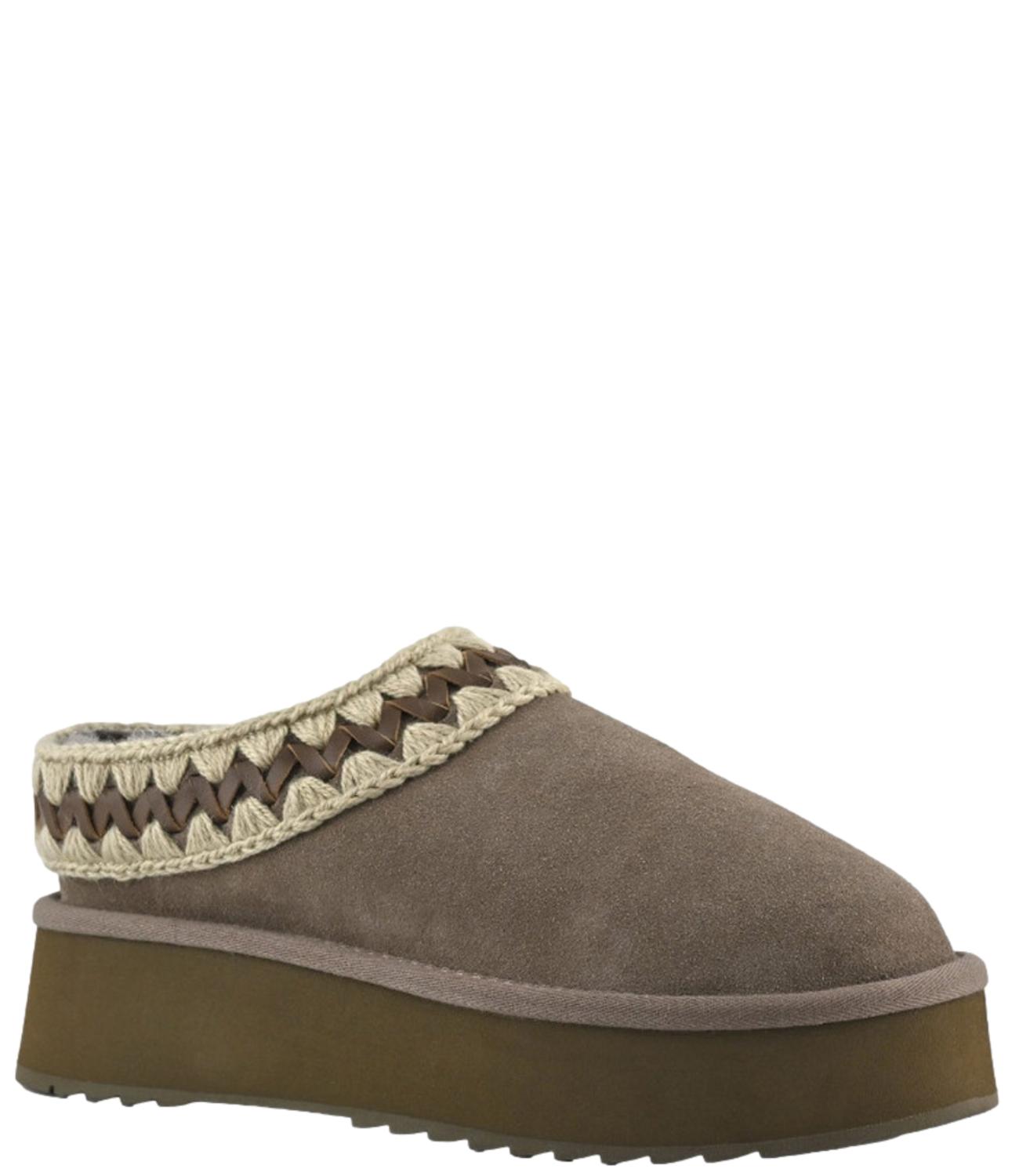 Mou Ciabatte Platform Clog Suede Leather Elephant Grey Donna