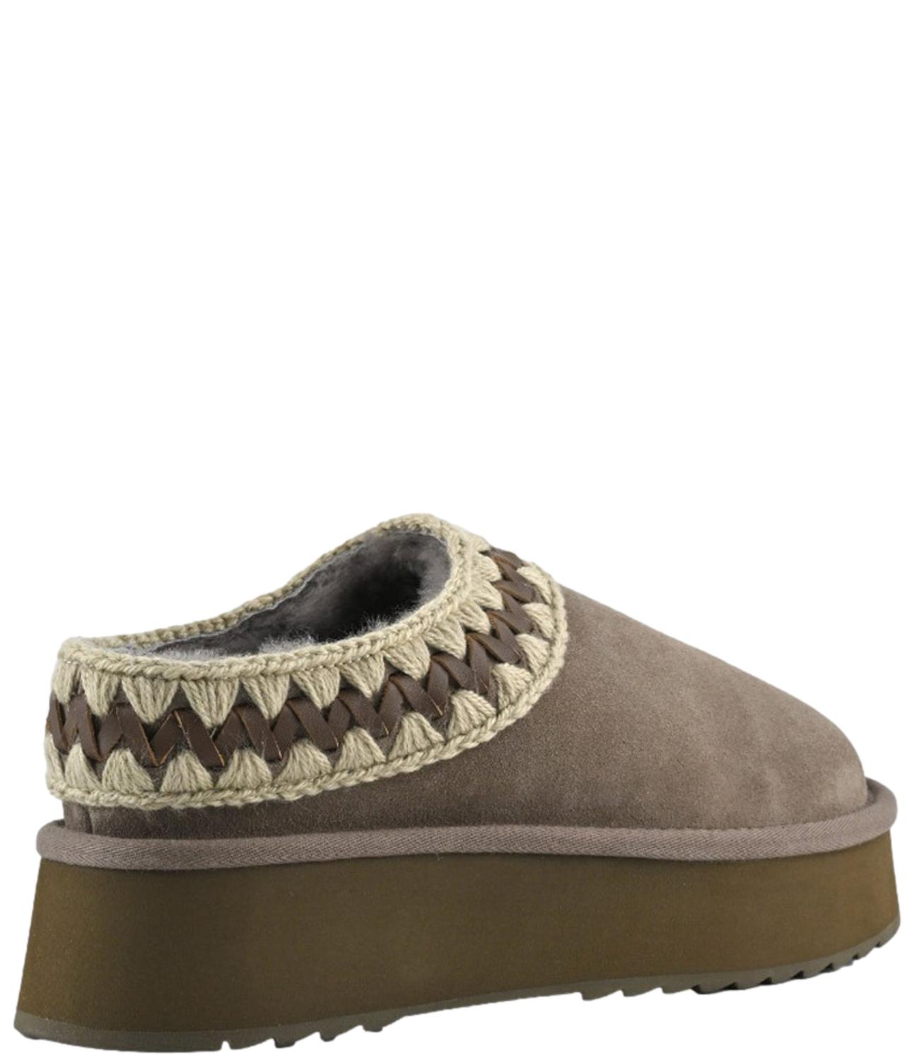 Novità per l'autunno-inverno 2025: il platform clog di mou è un nuovo e meraviglioso modello sapientemente realizzato a mano in vero montone double-face e arricchito dagli inconfondibili dettagli in lana all'uncinetto firmati mou. Incredibilmente confortevole e resistente con suola in gomma EVA.