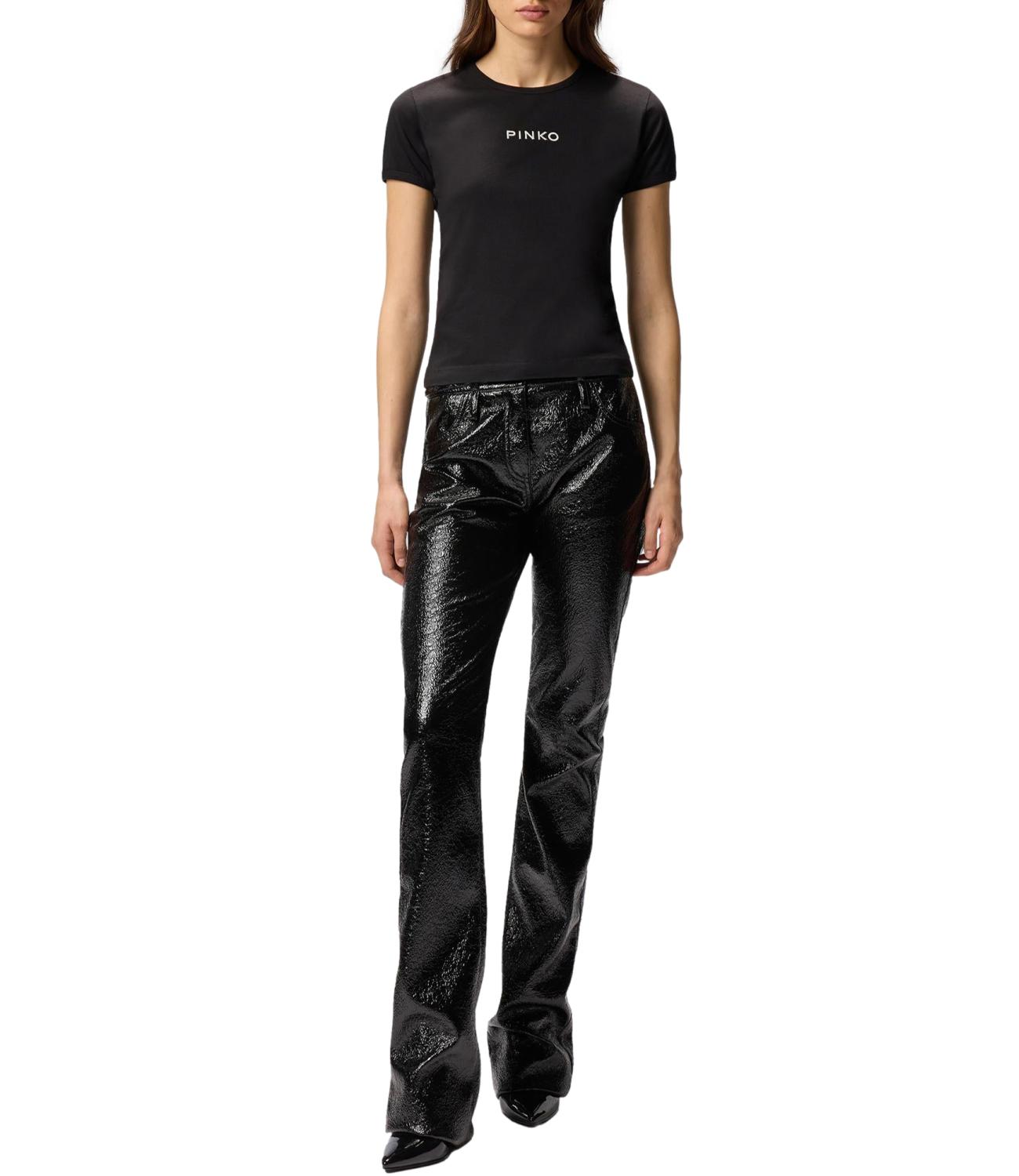 T-shirt a maniche corte dal taglio leggermente slim in jersey di cotone con ricamo logo PINKO davanti. Iconica e versatile, questa maglietta aggiungerà a qualsiasi look da giorno un tocco personale che non passa inosservato.