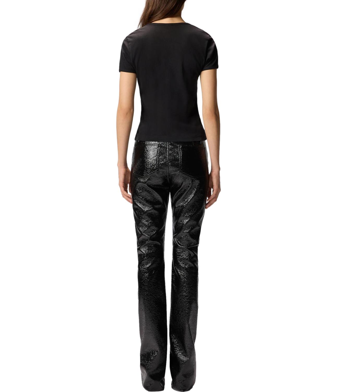 T-shirt nera girocollo maniche corte logo ricamato bianco