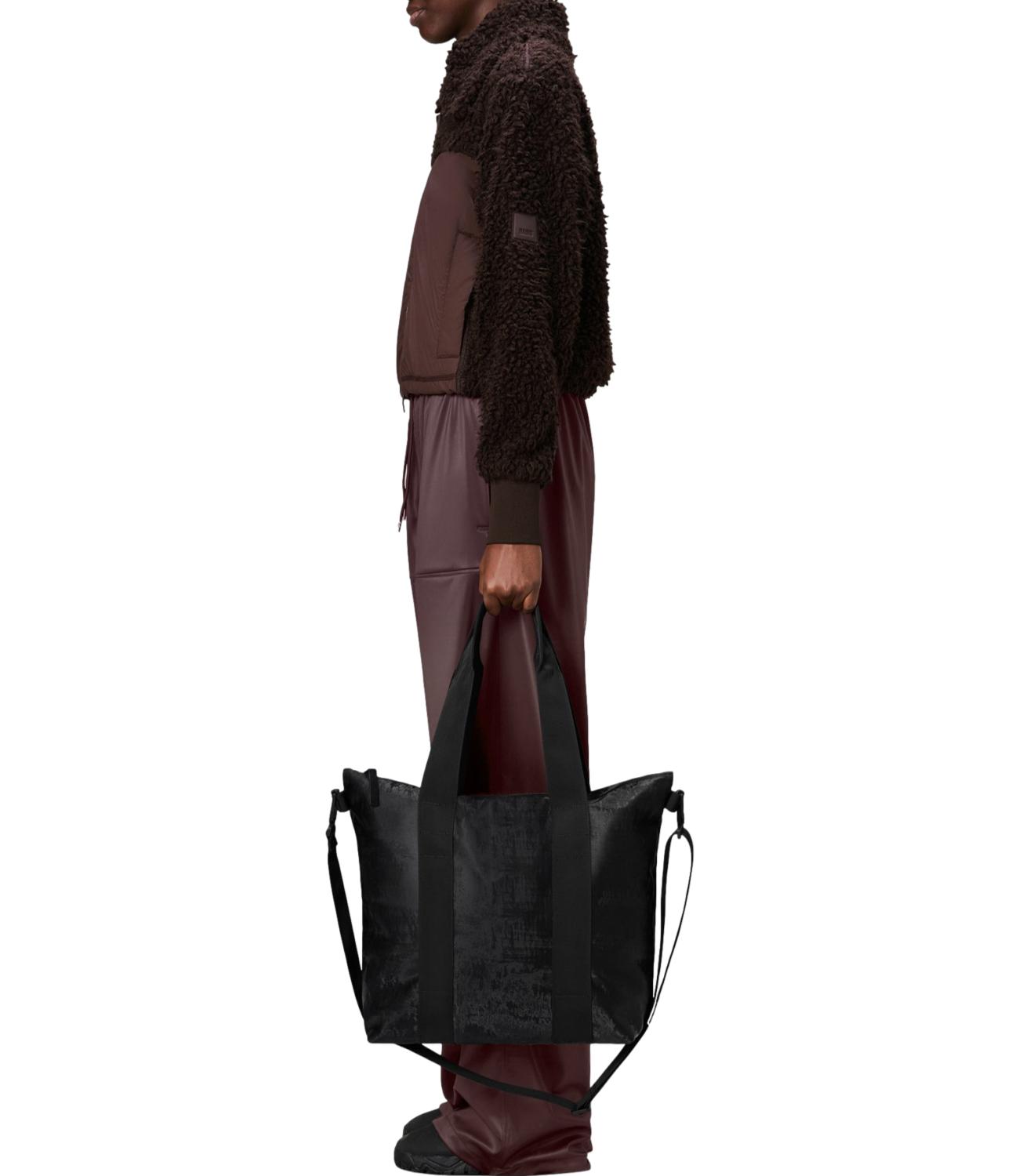 Borsa Rains nera tote bag mini con manici neri, borsone in tessuto idrorepellente borbido da portare anche a tracolla