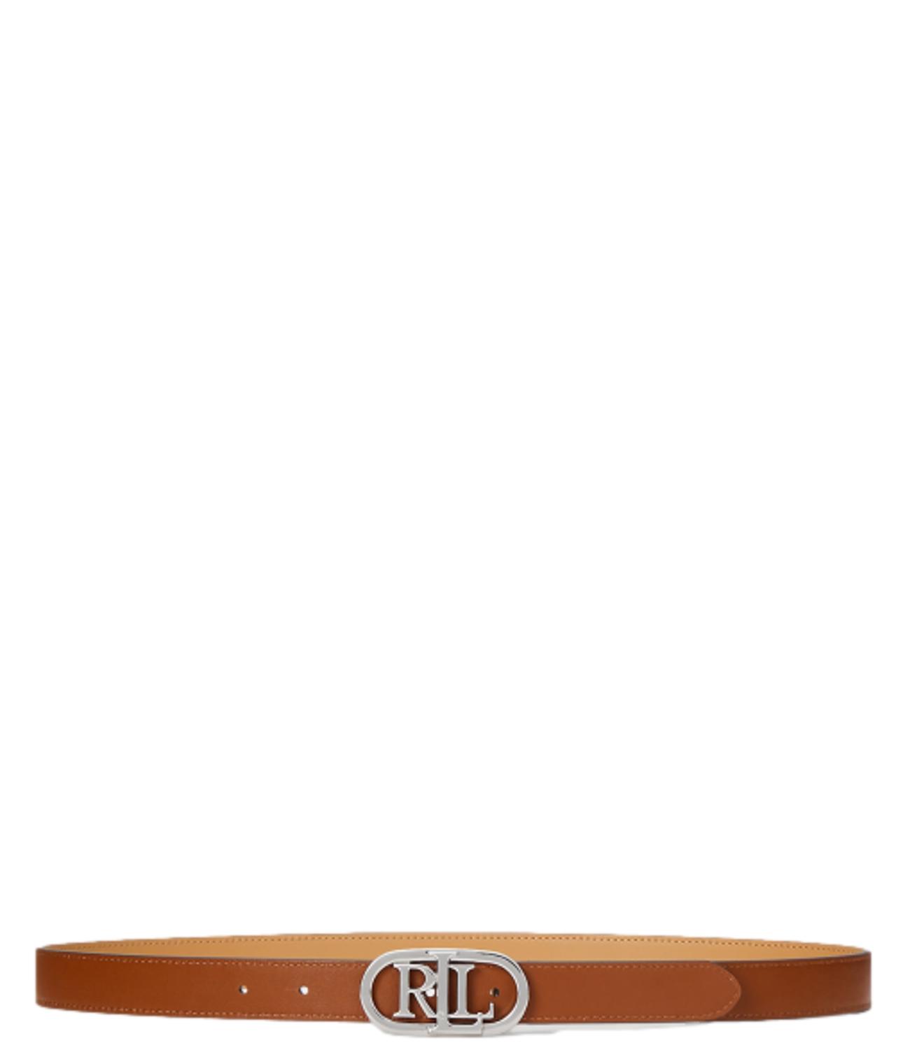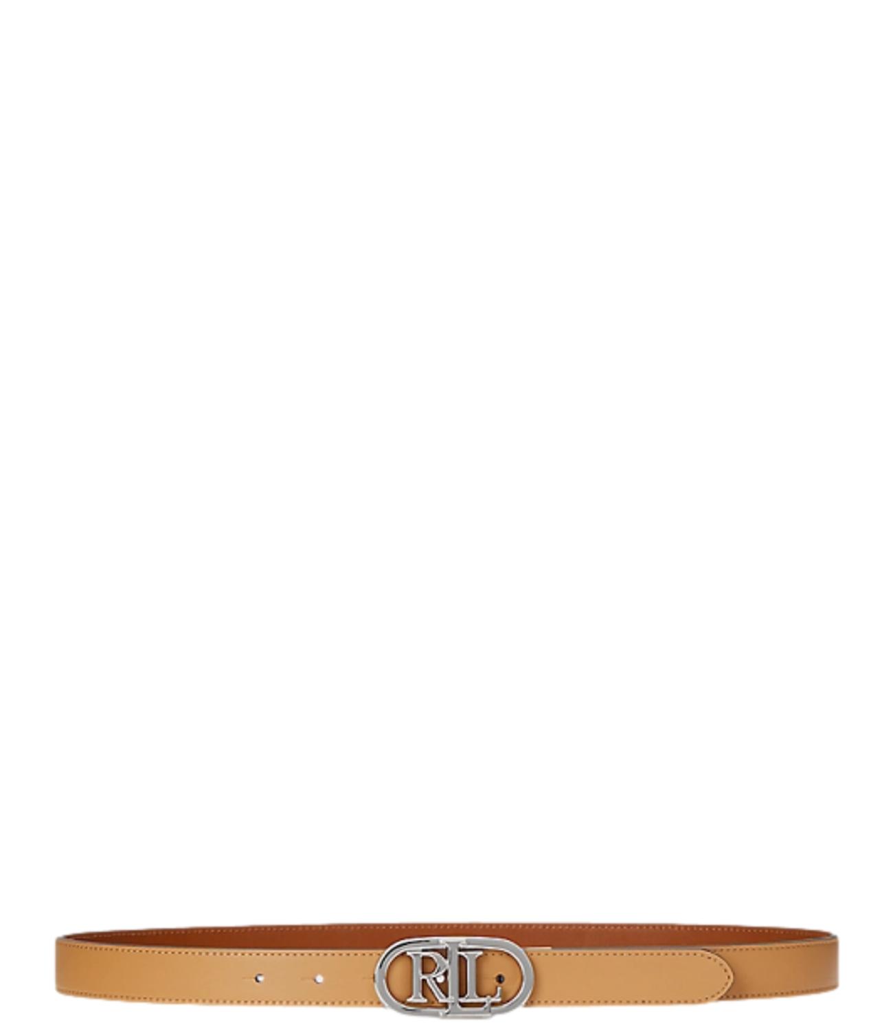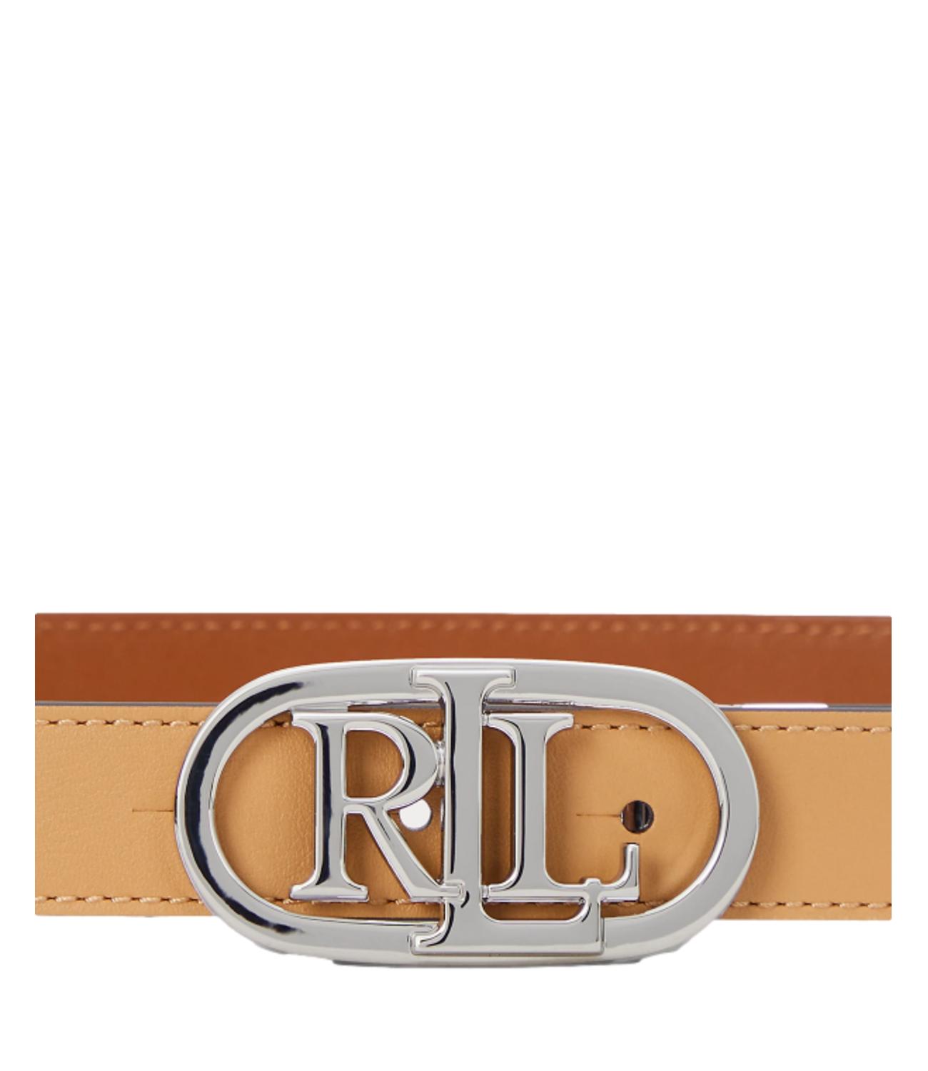 Lauren Ralph Lauren Cintura donna reversibile in pelle bovina beige reversibile e marrone con logo argento RL ovale