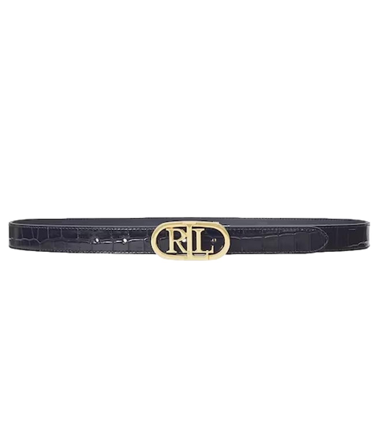 Lauren Ralph Lauren Cintura donna marrone cuoi modello OVAL REV 25-BELT-SKINNY con fibia argento RL, cinta sottile in varie misure