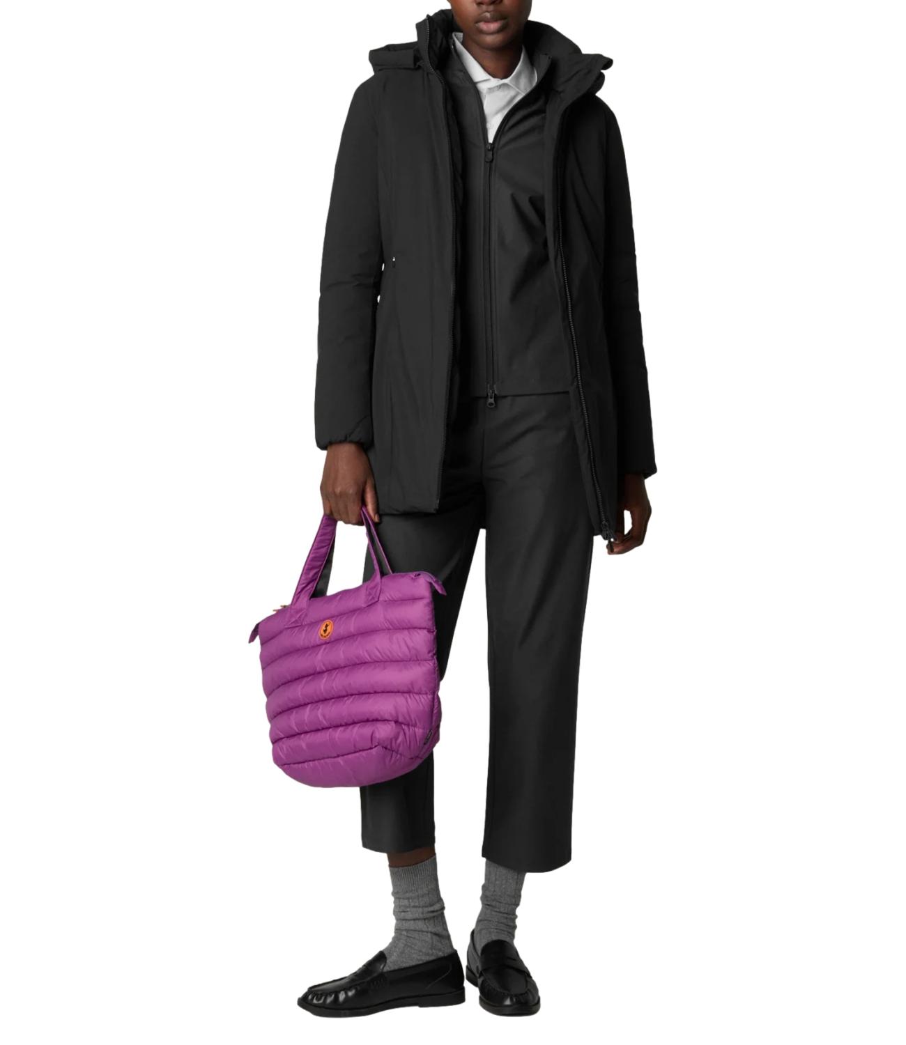 Il parka donna modello Rachel sfida la pioggia e il freddo con tessuti riciclati e imbottitura animal free in Recycled Plumtech®. Il capo ha cappuccio rimovibile e regolabile, zip centrale water-resistant e tasche zippate. Segni particolari? I tiretti personalizzati e il logo tono su tono incollato a caldo sulla manica.