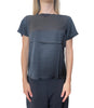 Blusa Girocollo Elasticizzata a Maniche Corte in Raso di Viscosa, Vestibilità Regular.