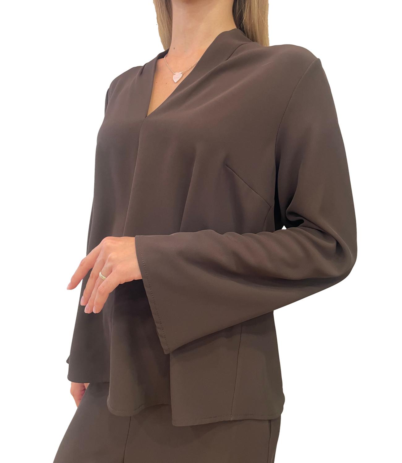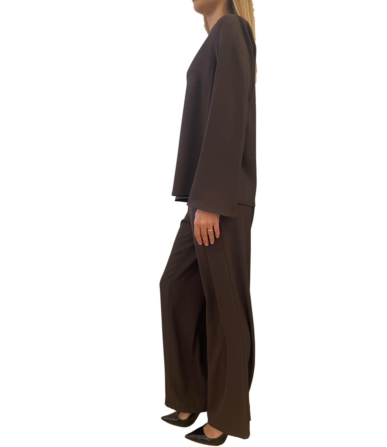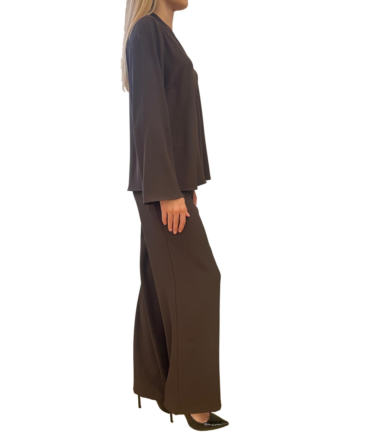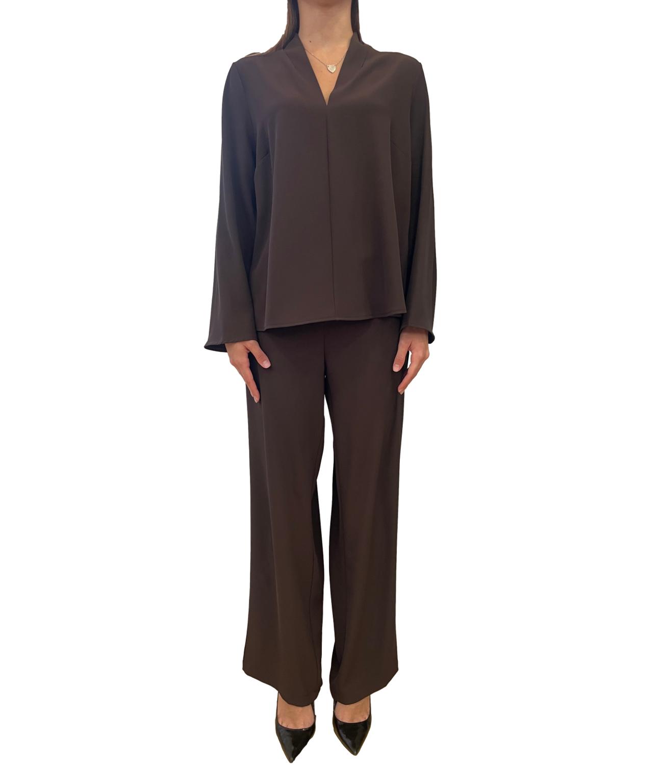 Completo Composto da Blusa Scollo a V e Pantaloni Dritti.