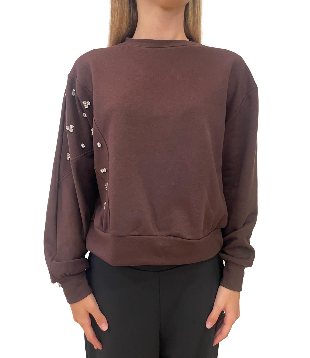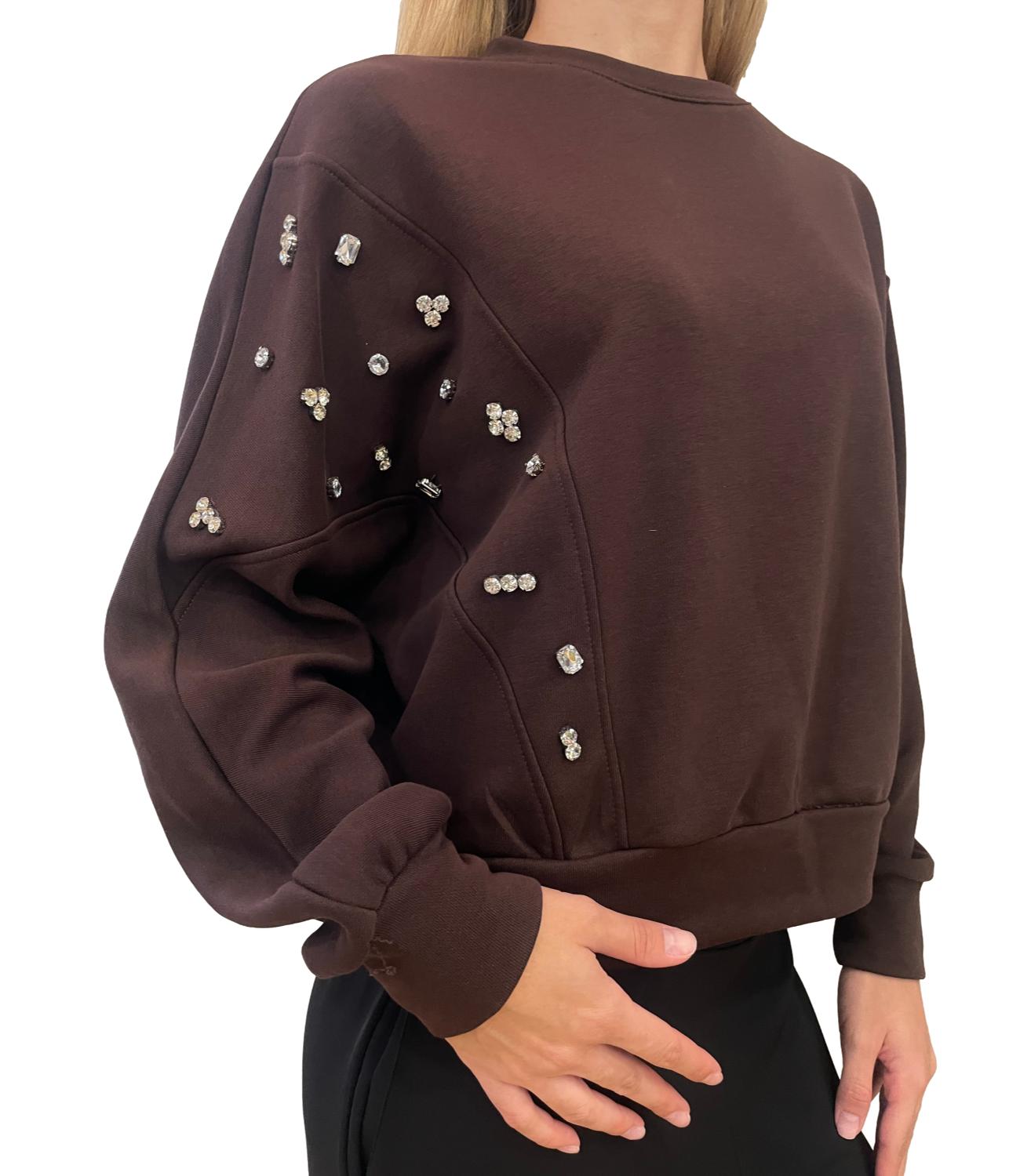 Felpa girocollo over fit con applicazioni gioiello sul fianco