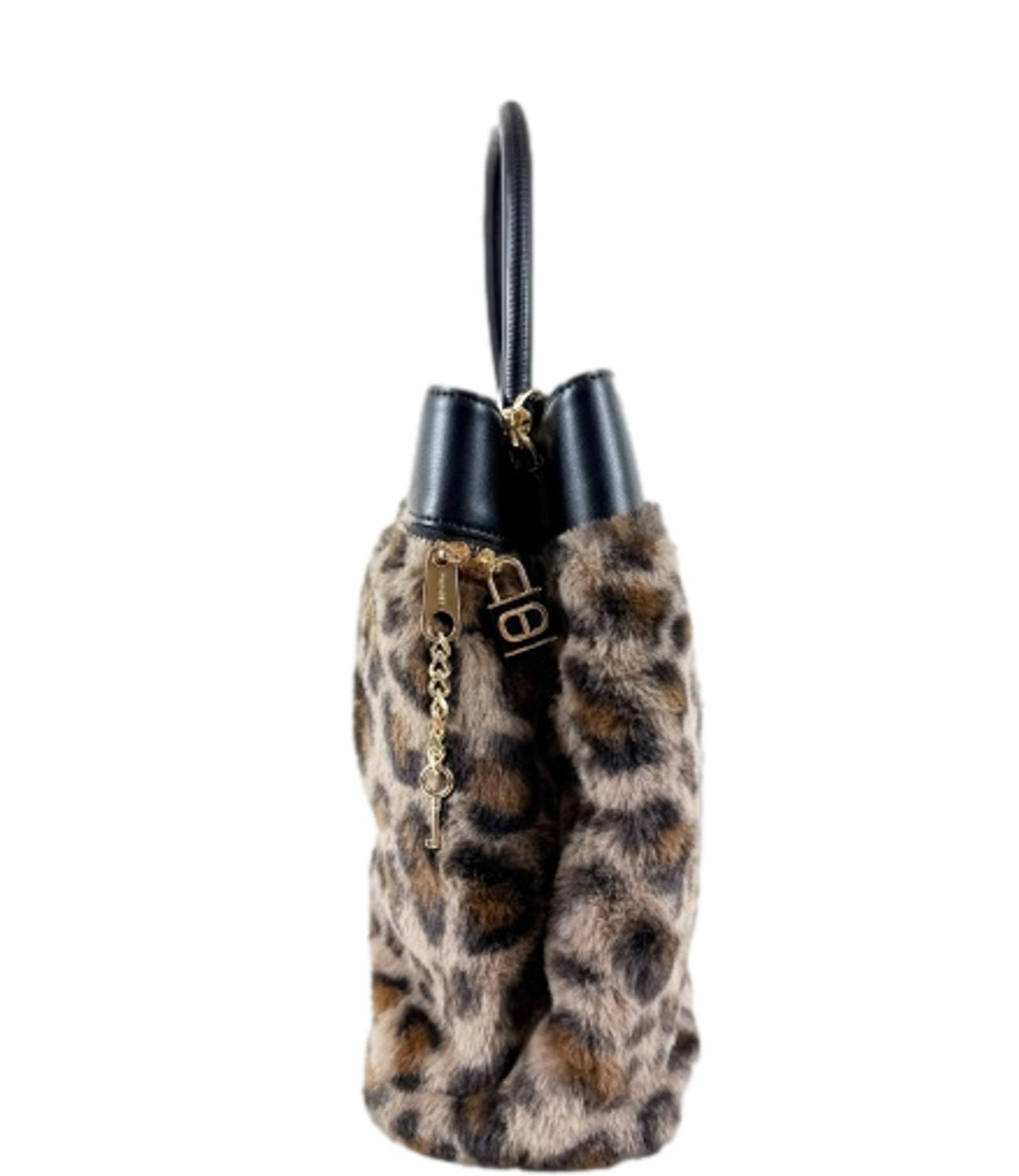 Twinset borsa shopper in faux fur maculato con lock Oval T