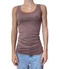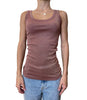 Canotta in lurex con lavorazione a costine, caratterizzata da un taglio aderente che valorizza la silhouette. Il girocollo classico e le spalline larghe la rendono comoda e raffinata allo stesso tempo.