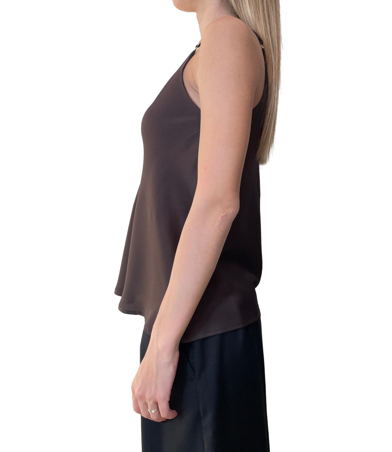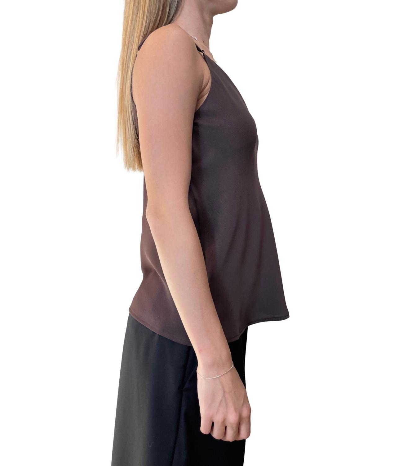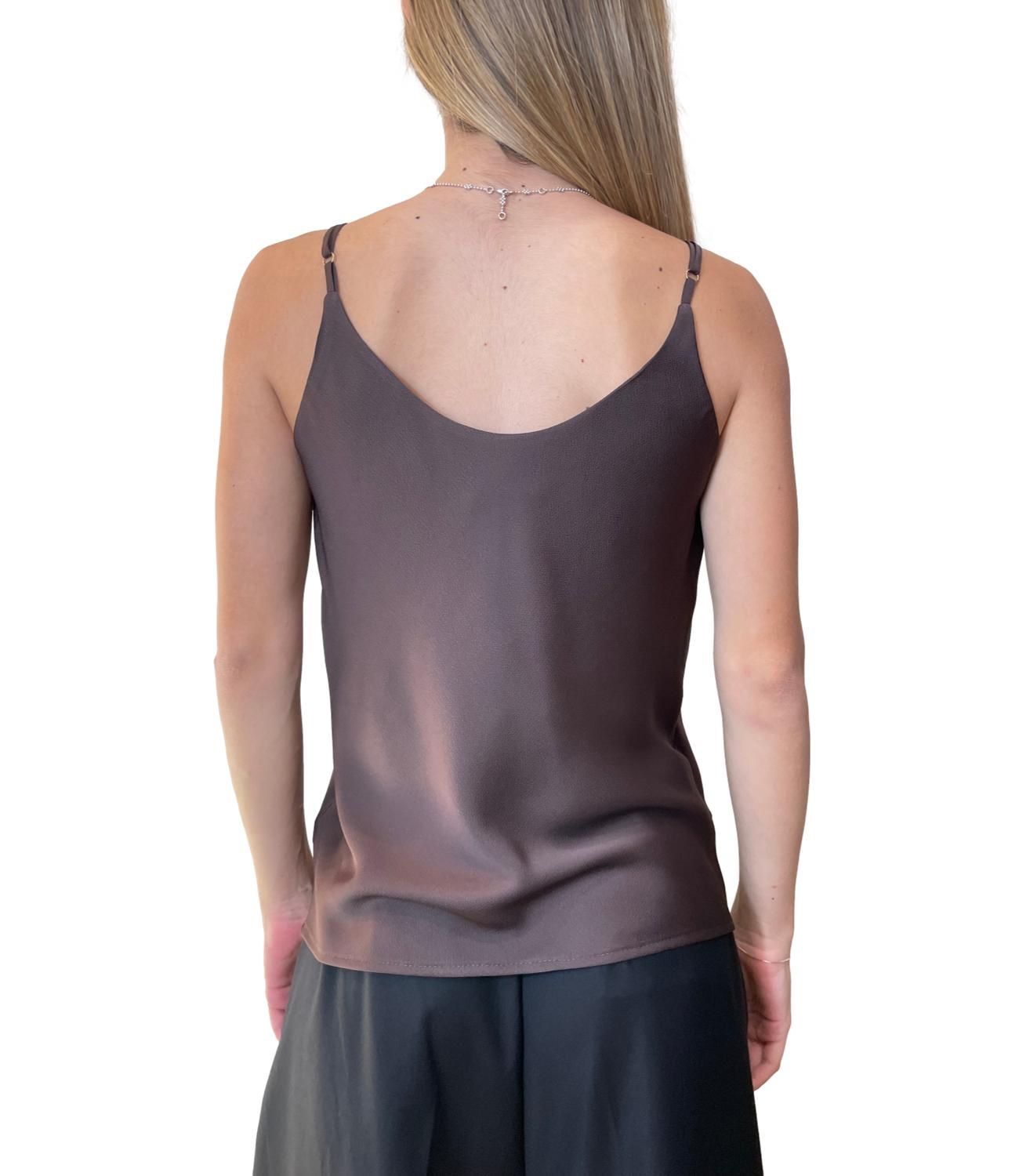 Questo top in satin lucido presenta un delicato scollo a V che valorizza il décolleté con eleganza. Le bretelle regolabili assicurano una vestibilità perfetta e personalizzabile.