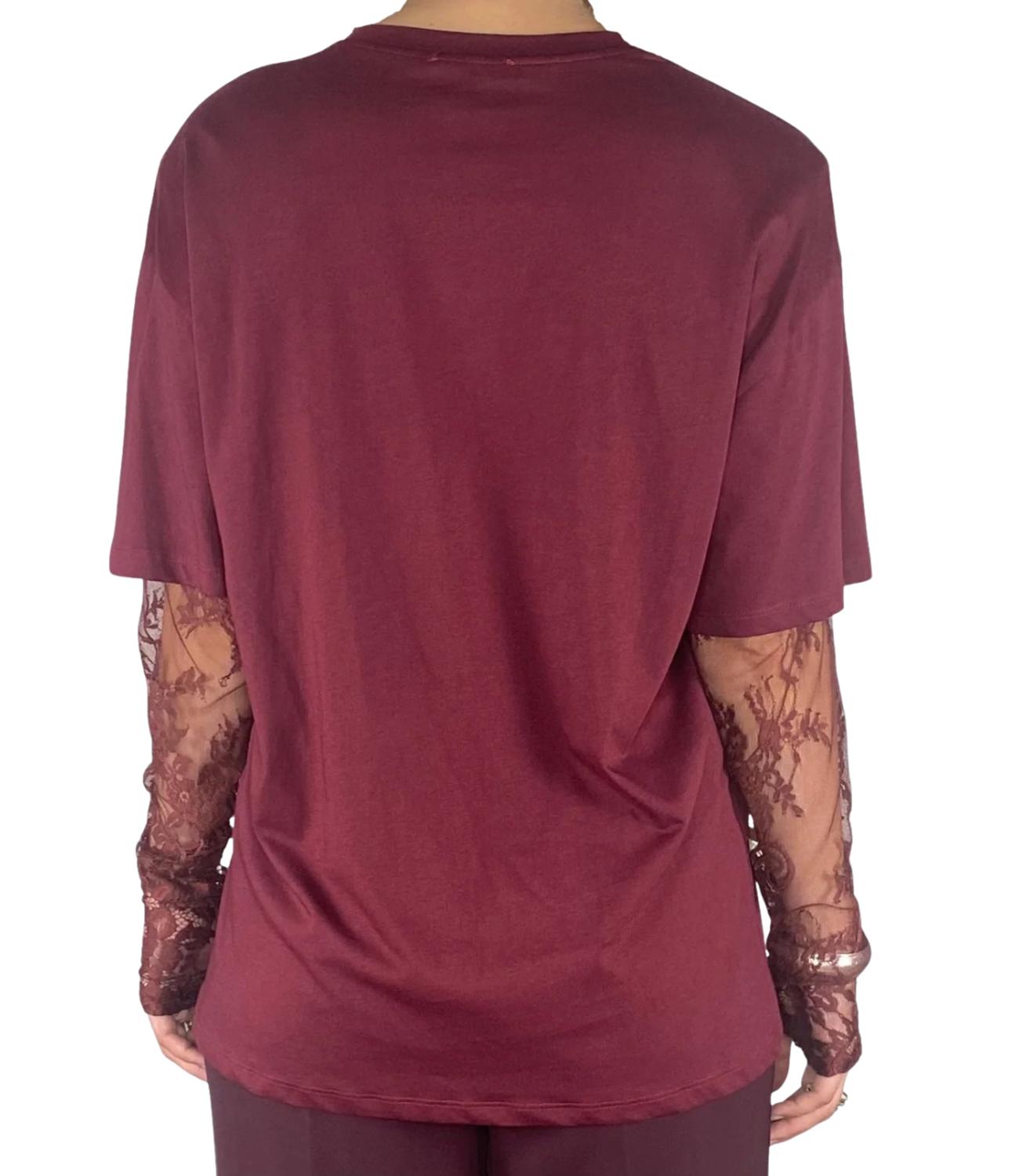 Vicolo T-shirt Pizzo Bordeaux Donna