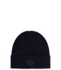 Cappello Diesel beanie nero in lana a coste con logo D tono su tono su risvolto, da uomo e donna