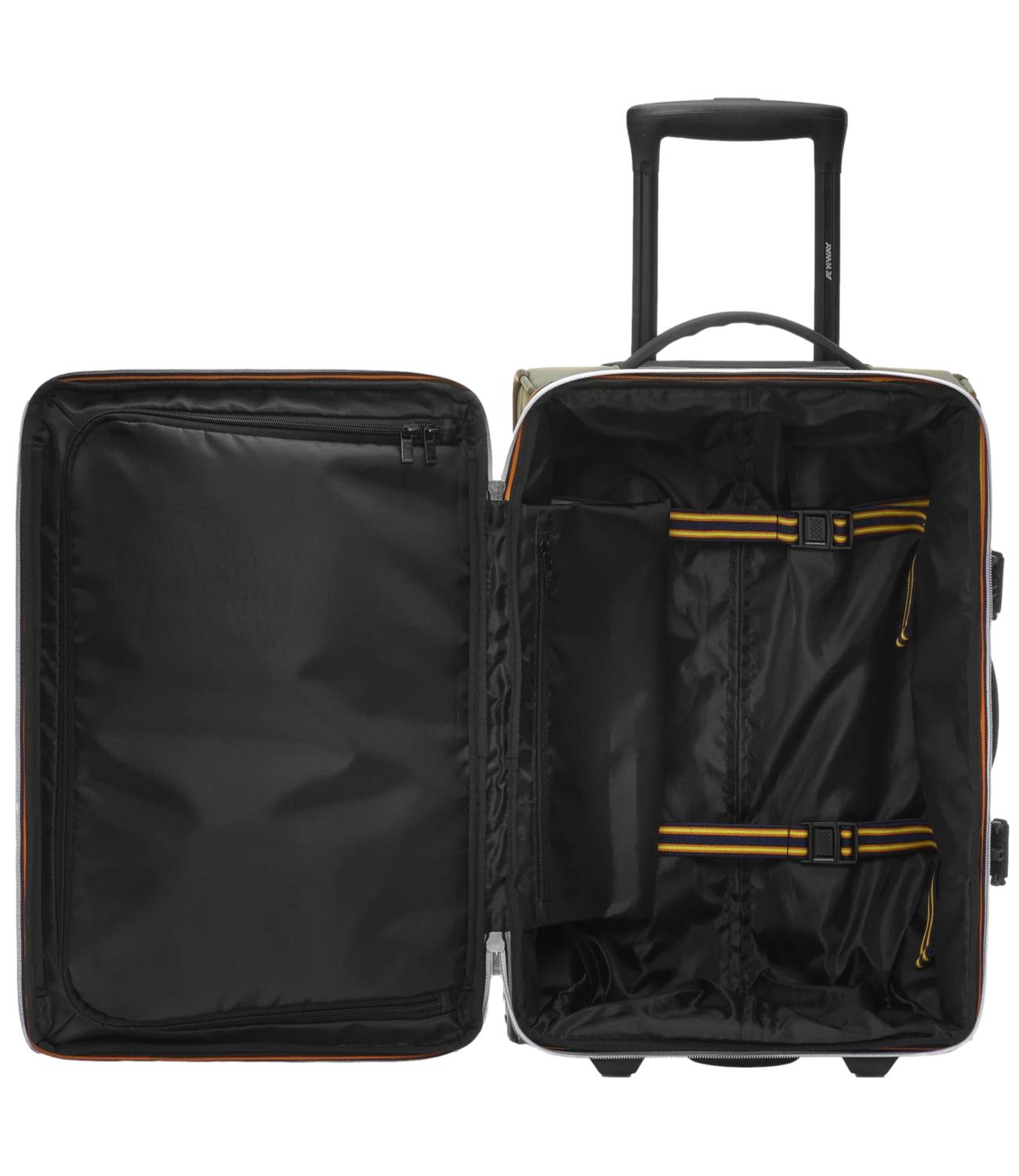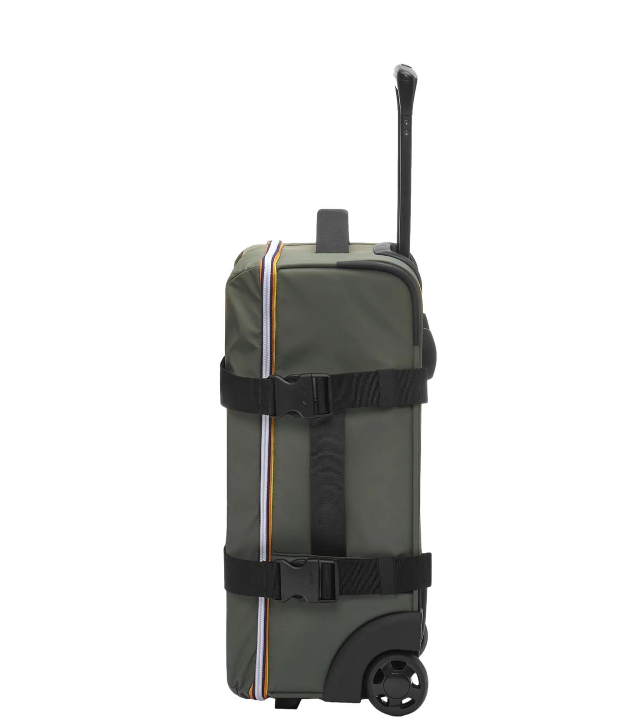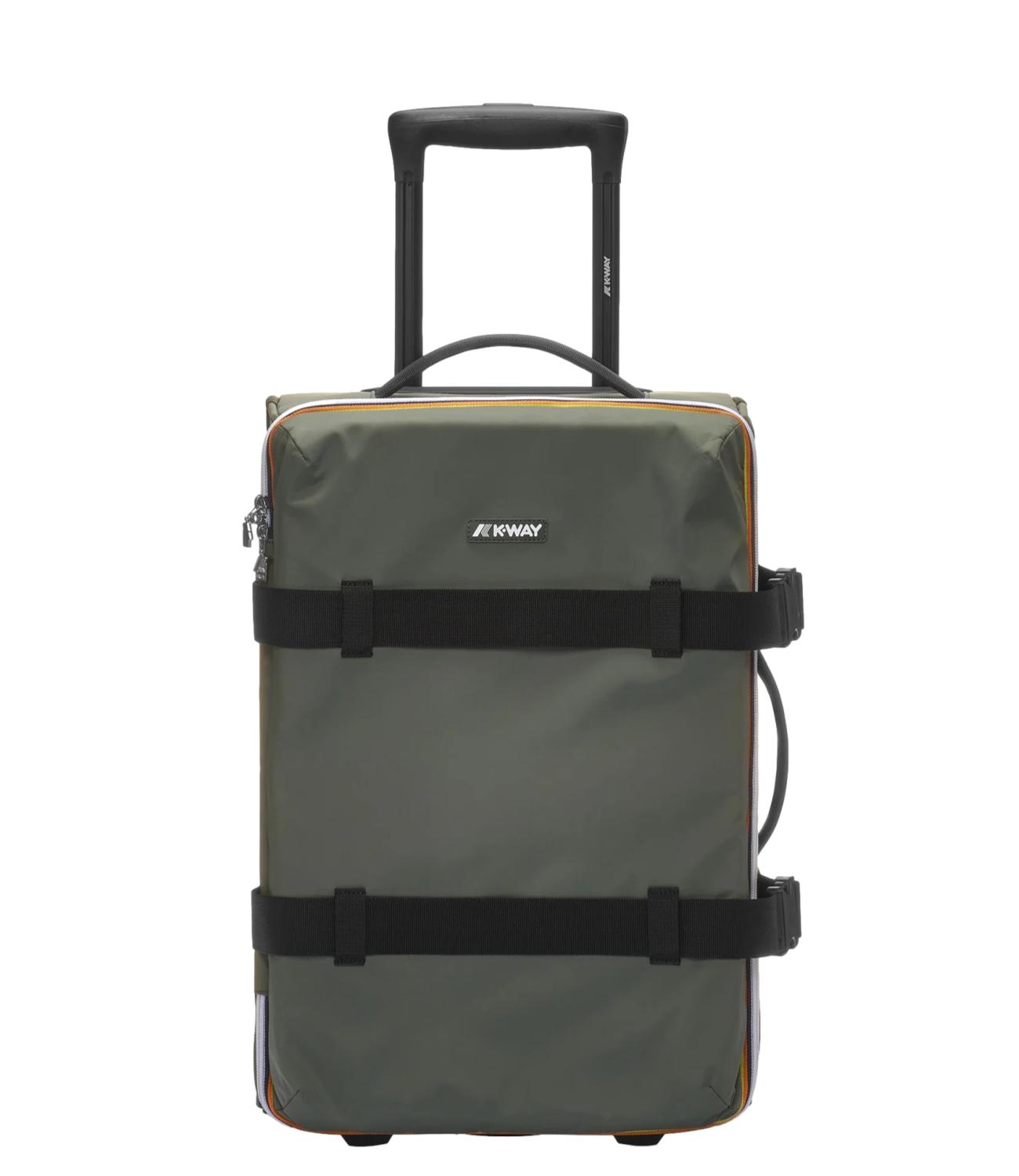 Trolley k-way Blossac S Green Blacklish Black pure verde in tessuto morbido, valigia con cinture nere