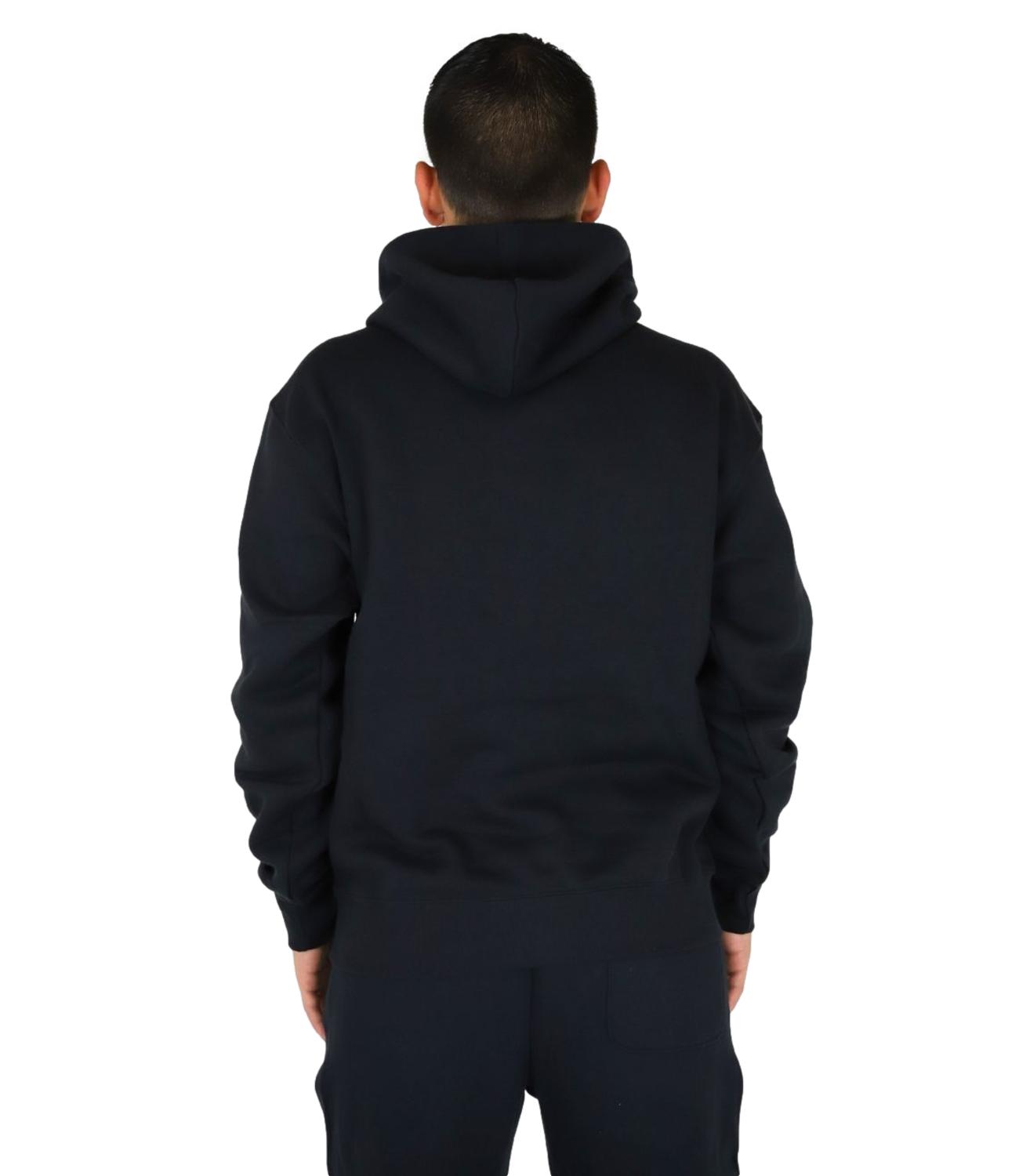 Felpa nera New Balance con cappuccio e tasca in cotone felpata all'interno con logo bianco sul petto vestibilità regolare